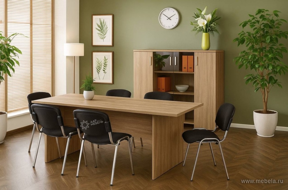 При создании мебели Аргентум были применены необычные решения, как на конструкторском, так и на дизайнерском уровнях. Столы повышенной длины и необычного типа сборки сочетаются здесь с грубо фактурным рисунком дерева на ламинированных панелях ДСП. Все это делает гарнитур не только стильным, но и многофункциональным.