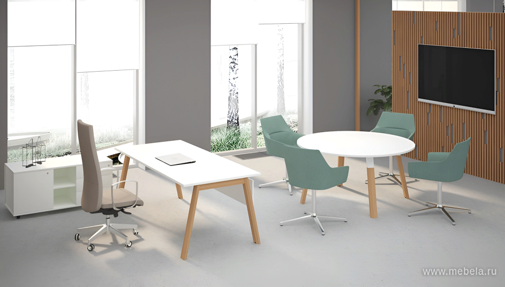 Artwood — организация рабочего места руководителя в эко-стиле. Лёгкость и эстетичность. Красивое сочетание пропорций и декоров подчёркивает современный взгляд руководителя на создание комфортного и функционального пространства для работы.