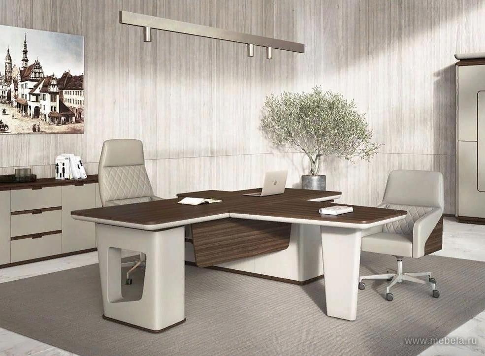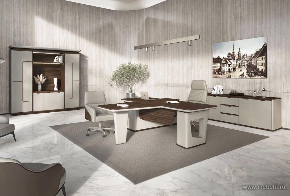 Кабинет Avatar - cовременная классика в сегменте элитной мебели. Массивный, с безукоризненной обработкой стол руководителя отделан элитный кожей и дорогими породами редкого дерева мореный Эвкалипт. Этот теплый цвет одновременно придает таинственность и современность коллекции мебели.