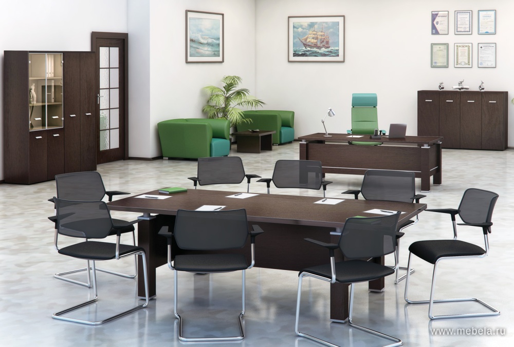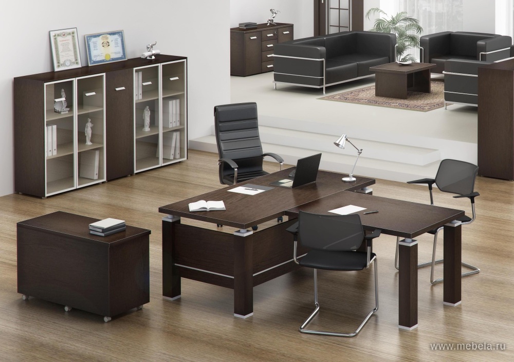 В кабинете “Бонд” успешно сочетается классический стиль с элементами Хай-Тека и яркие темно-светлые контрасты. Это позволяет одновременно добиться солидного, но современного внешнего вида для вашего офиса. Малое количество декоративных элементов не перегружает интерьер, поэтому такая мебель подойдет для любого офиса.