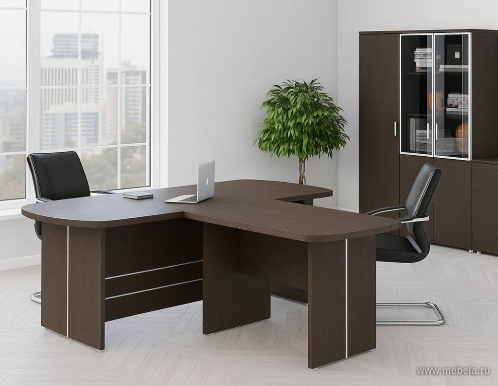 Высококачественная мебель с уникальным дизайном является визитной карточкой любой компании. Кабинет руководителя Bonn отвечает современным требованиям к офисной мебели. Элементы кабинета выполнены из ЛДСП в цвете темного дуба. Общий вид кабинета представлен в классическом и современном стилях.