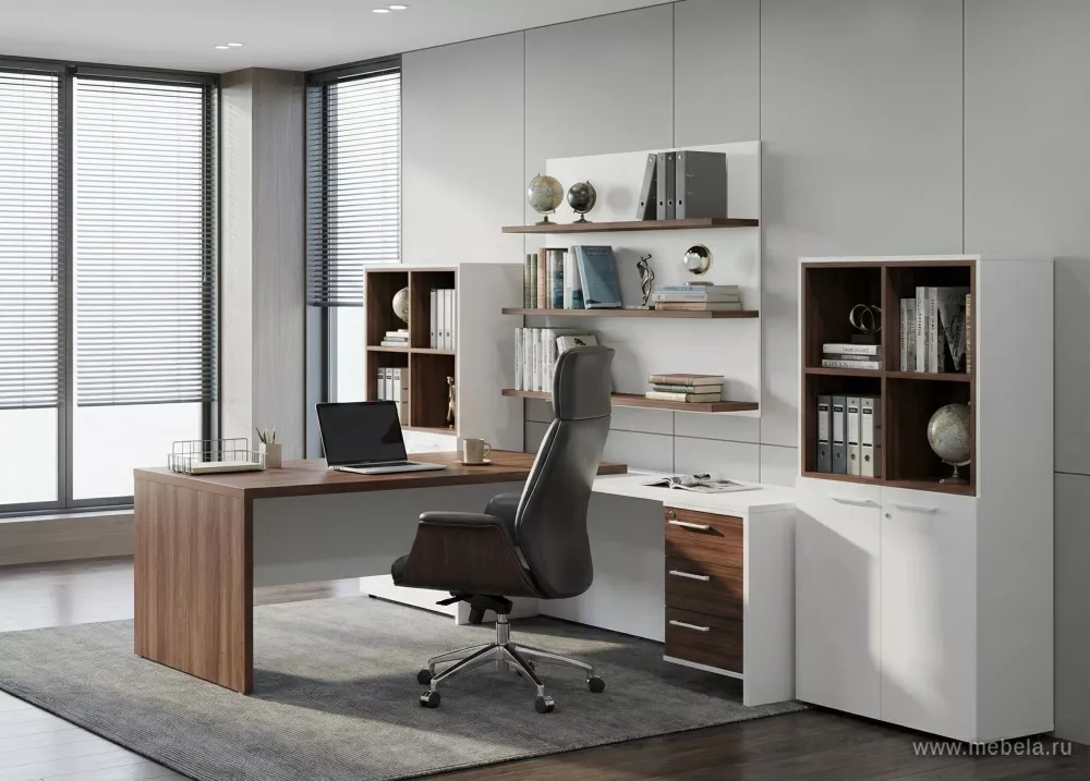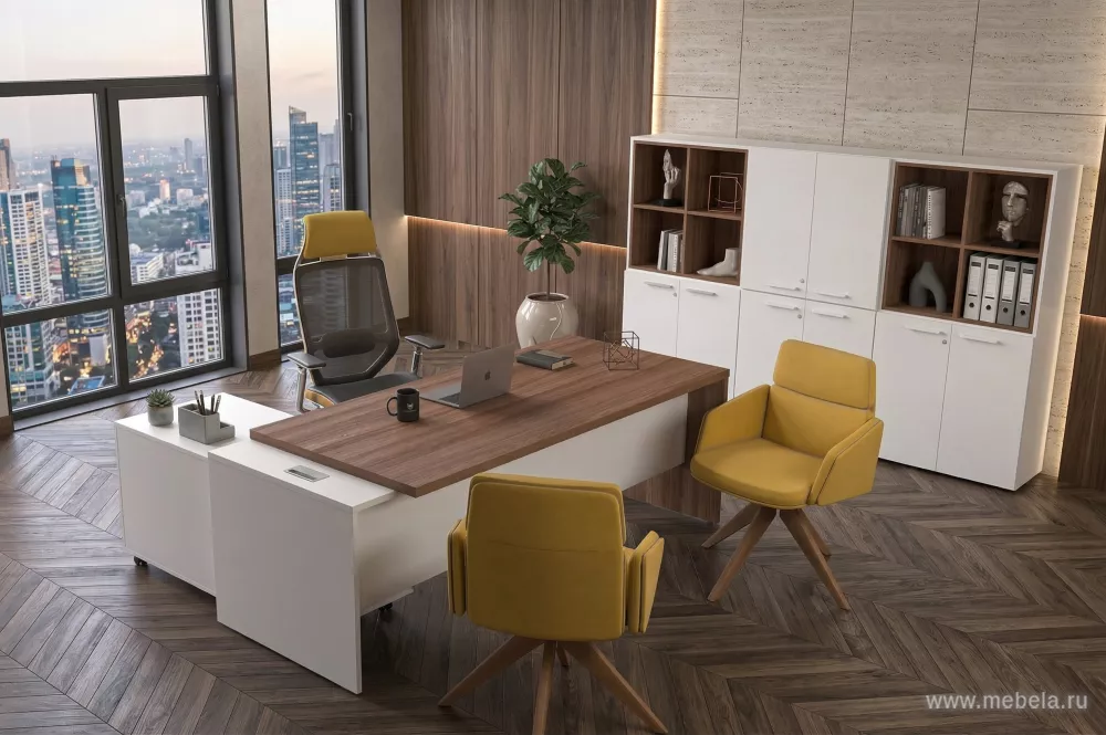 Кабинет для руководителя Кортез (Kortez) в цвете тёмный шимо - это не только рабочее пространство, но и место, где можно провести время с коллегами и партнерами. Он должен быть стильным, уютным и функциональным. В кабинете для руководителя должны быть удобные кресла, стол, шкафы для документов и другие необходимые предметы.