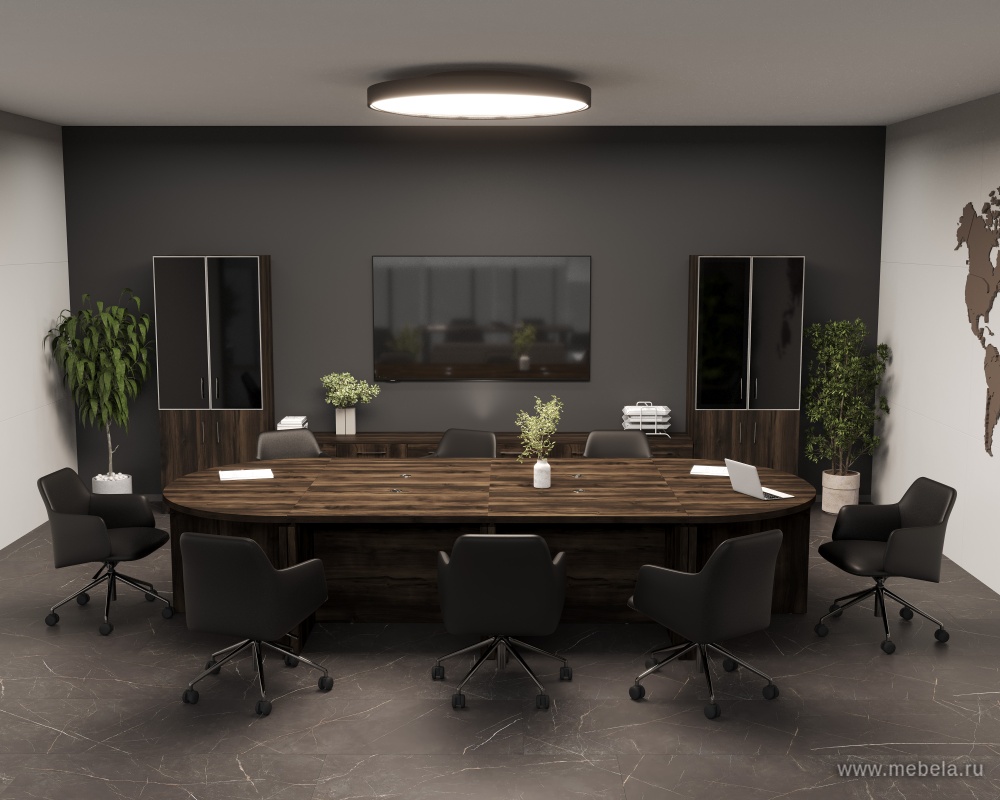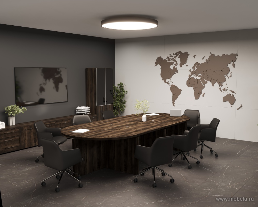 Насыщенный кофейный цвет кабинета руководителя Yalta Дуб мали преобразит скучный офисный интерьер и сделает его богатым и респектабельным. Кроме необычного цвета дуб мали, эта модель может похвастаться стильным и динамичным декором, отлично подходящим современным компаниям.