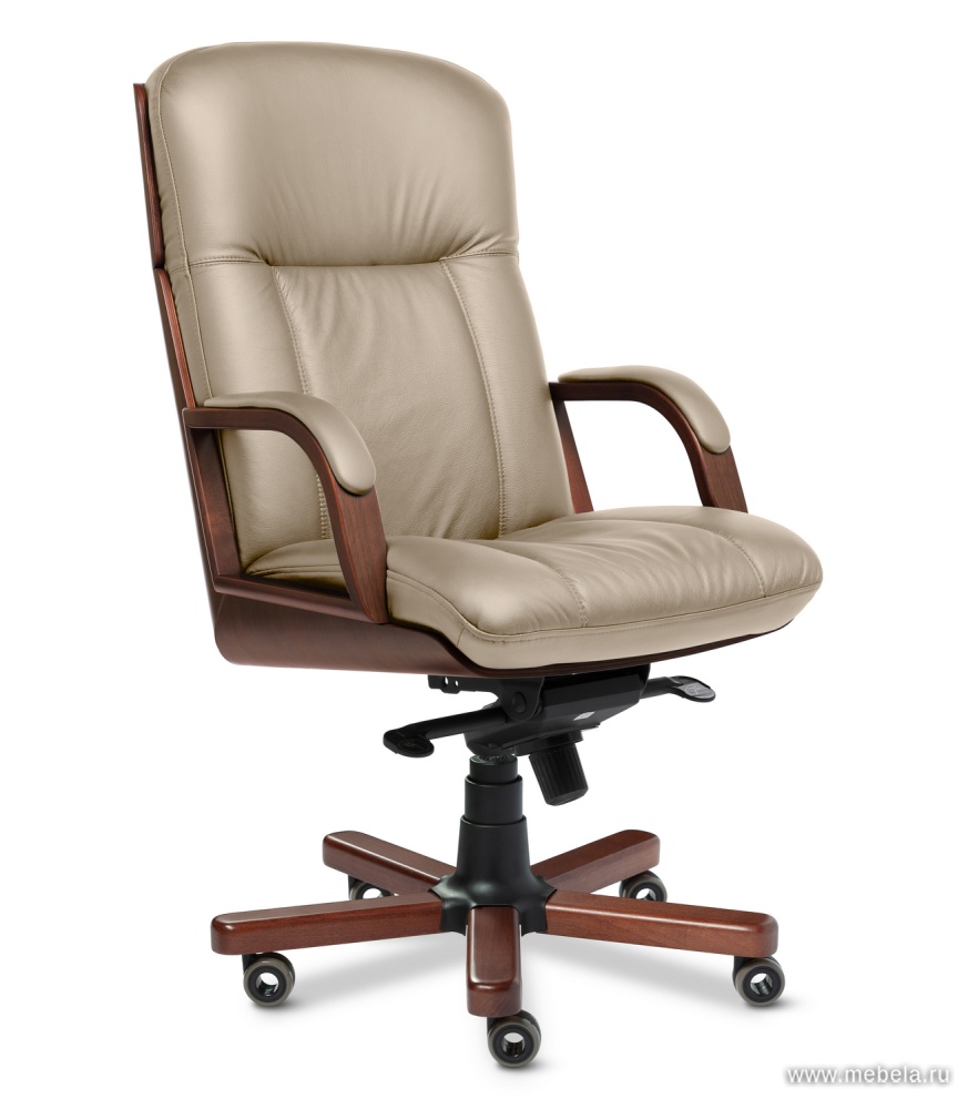 Для изготовления кресла для руководителя Cannes A используют натуральную кожу, кожзам и элементы дерева цвета темного ореха. У этой модели удобная рельефная спинка и подлокотники с кожаными накладками. Кресло оборудовано механизмом качания типа мультиблока — данная технология позволяет фиксирова...