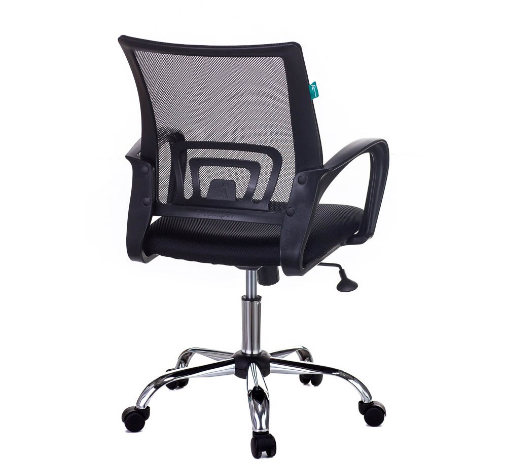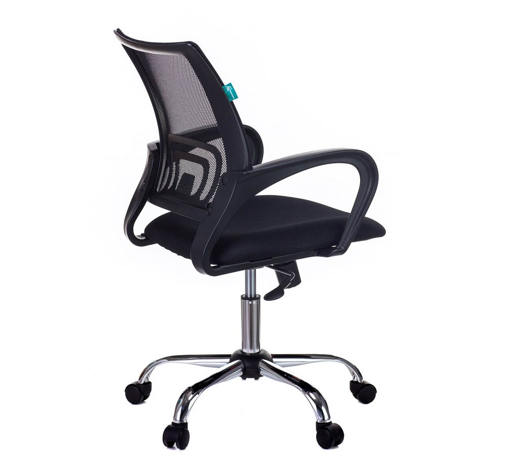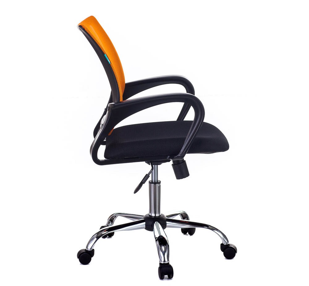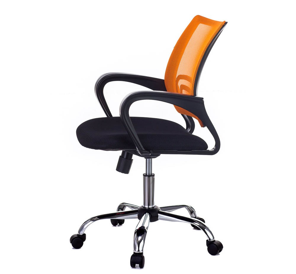 Хромированные элементы кресла выглядят стильно в любом интерьере. Для обивки сидения использована ткань, устойчивая к растяжению, истиранию. В лаконичный дизайн изделия прекрасно вписываются пластиковые подлокотники, которые будут очень удобными для владельца кресла. Хромированная пятилучевая крестовина с поворотными колесиками делает