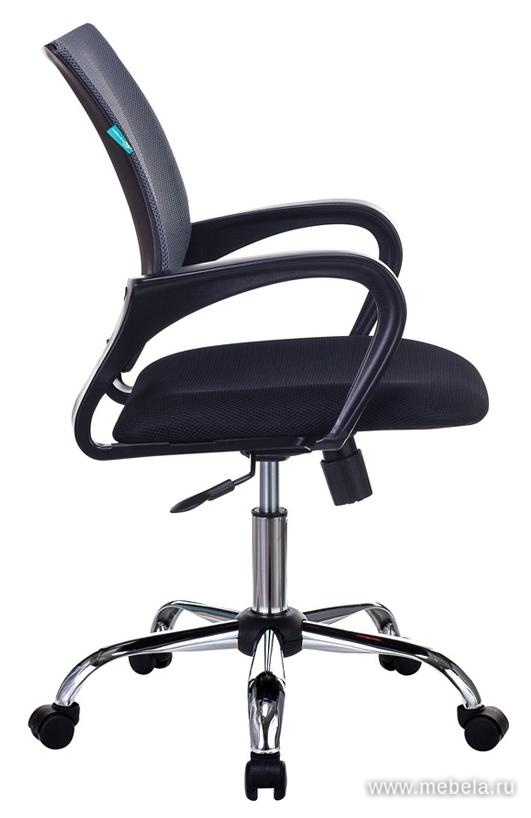 Хромированные элементы кресла выглядят стильно в любом интерьере. Для обивки сидения использована ткань, устойчивая к растяжению, истиранию. В лаконичный дизайн изделия прекрасно вписываются пластиковые подлокотники, которые будут очень удобными для владельца кресла. Хромированная пятилучевая крестовина с поворотными колесиками делает