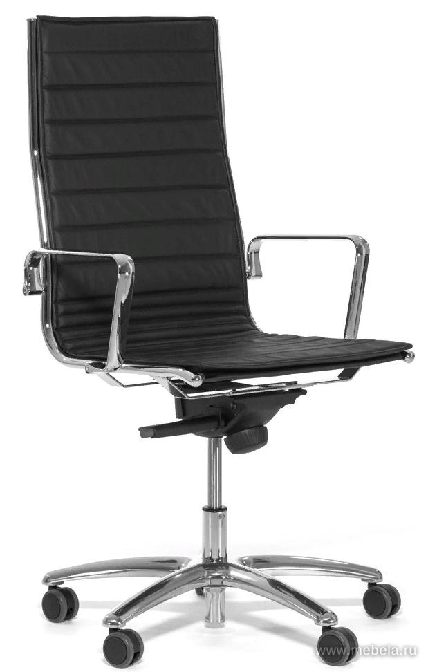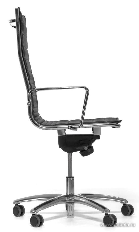 Жалюзийный тип обработки обивки сидений кресла для руководителей Light A резко повышает динамику образа и оживляет такую скучную на вид черную кожу. Ультратонкий профиль кресла и его хромированных опор не утяжеляет пространство вокруг, выглядя образцом стиля Хай-Тек. Накладные чехлы сохранят иде...