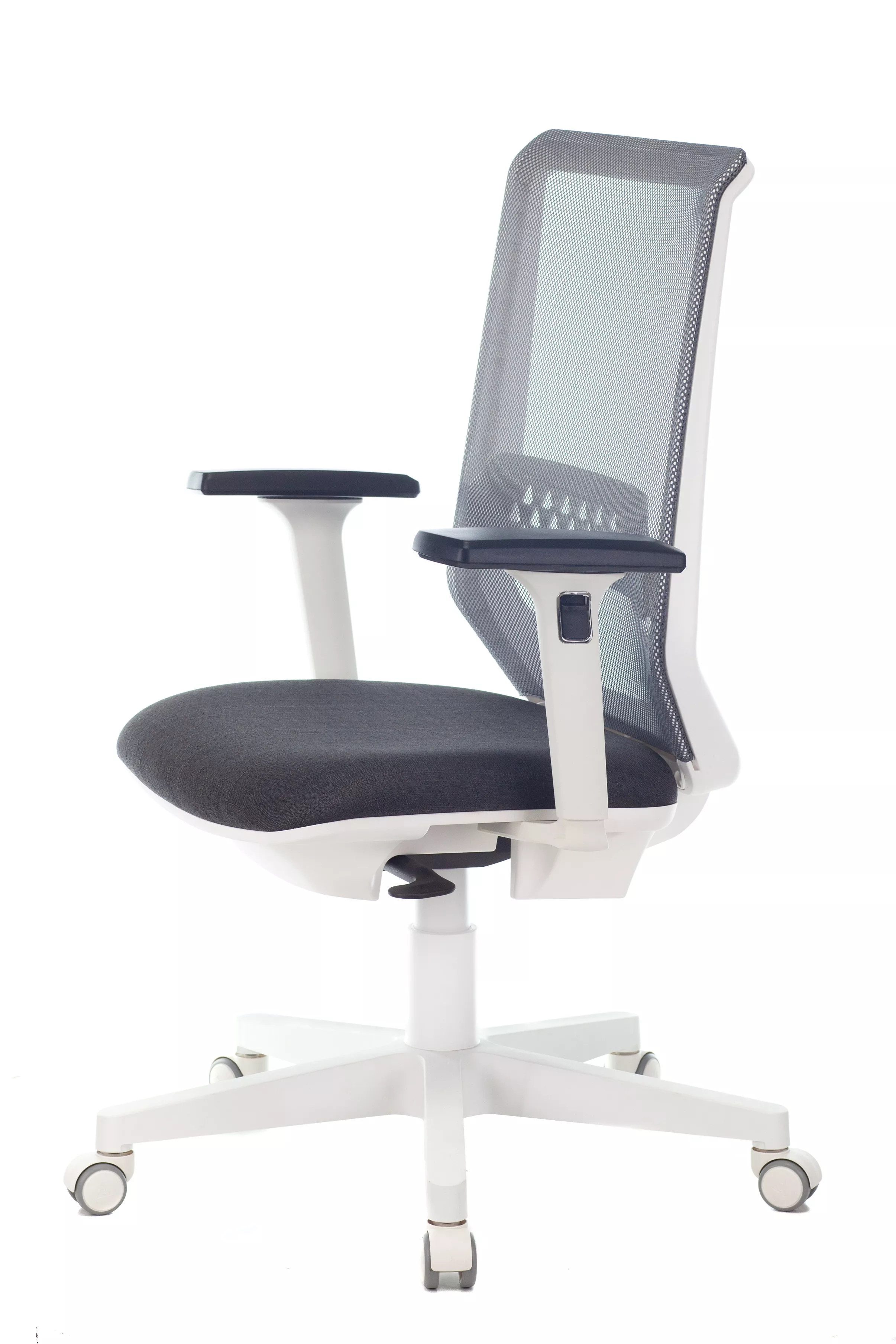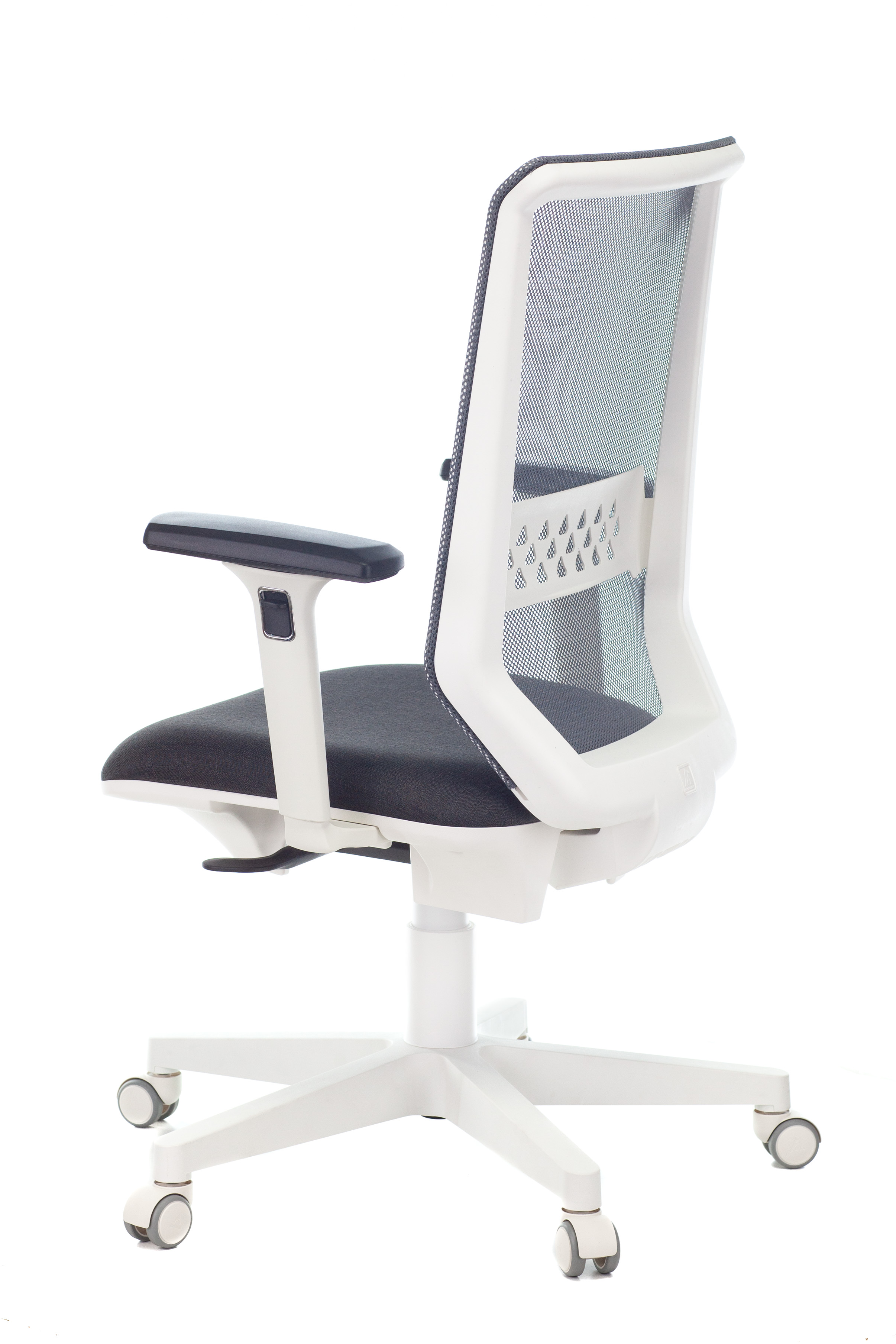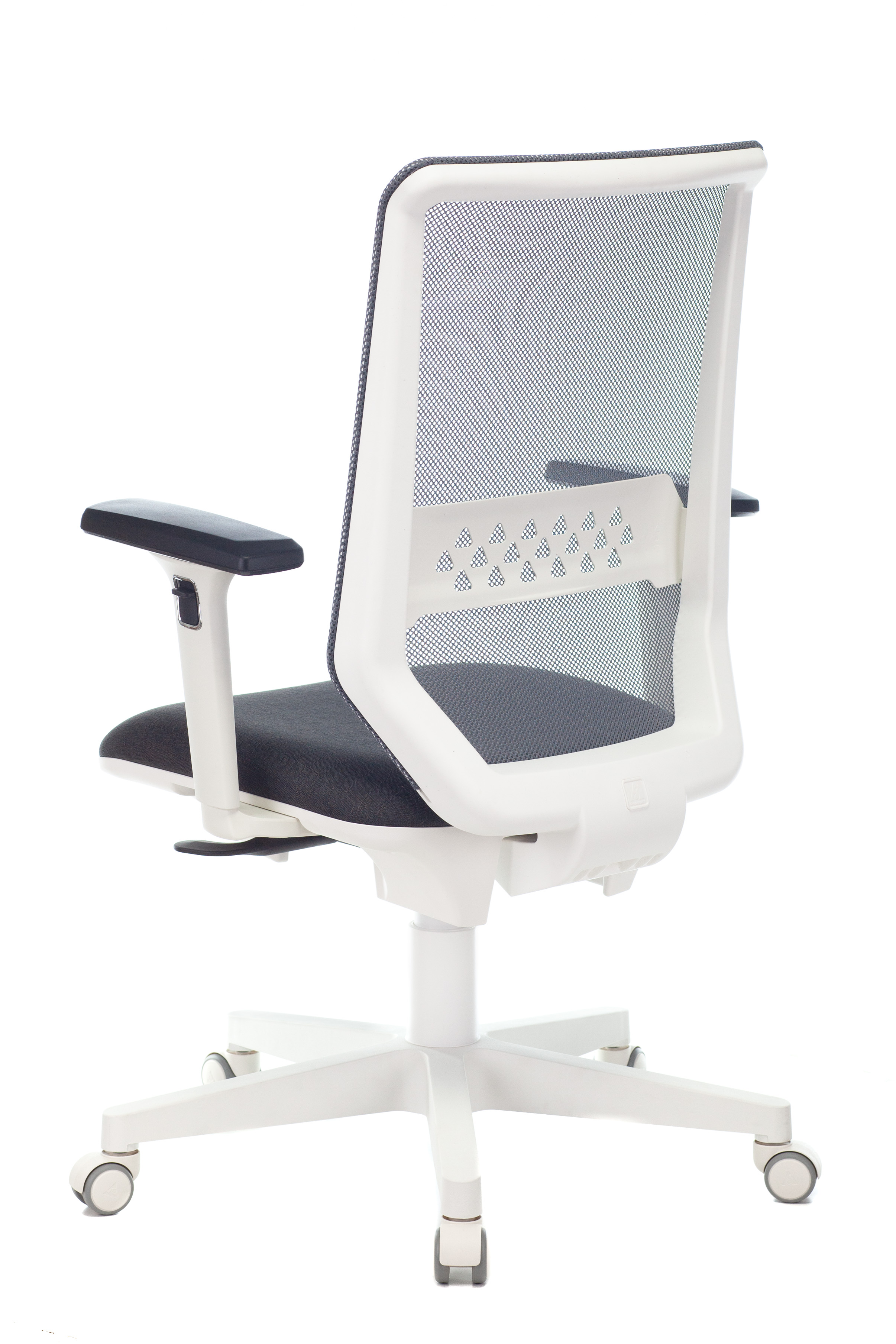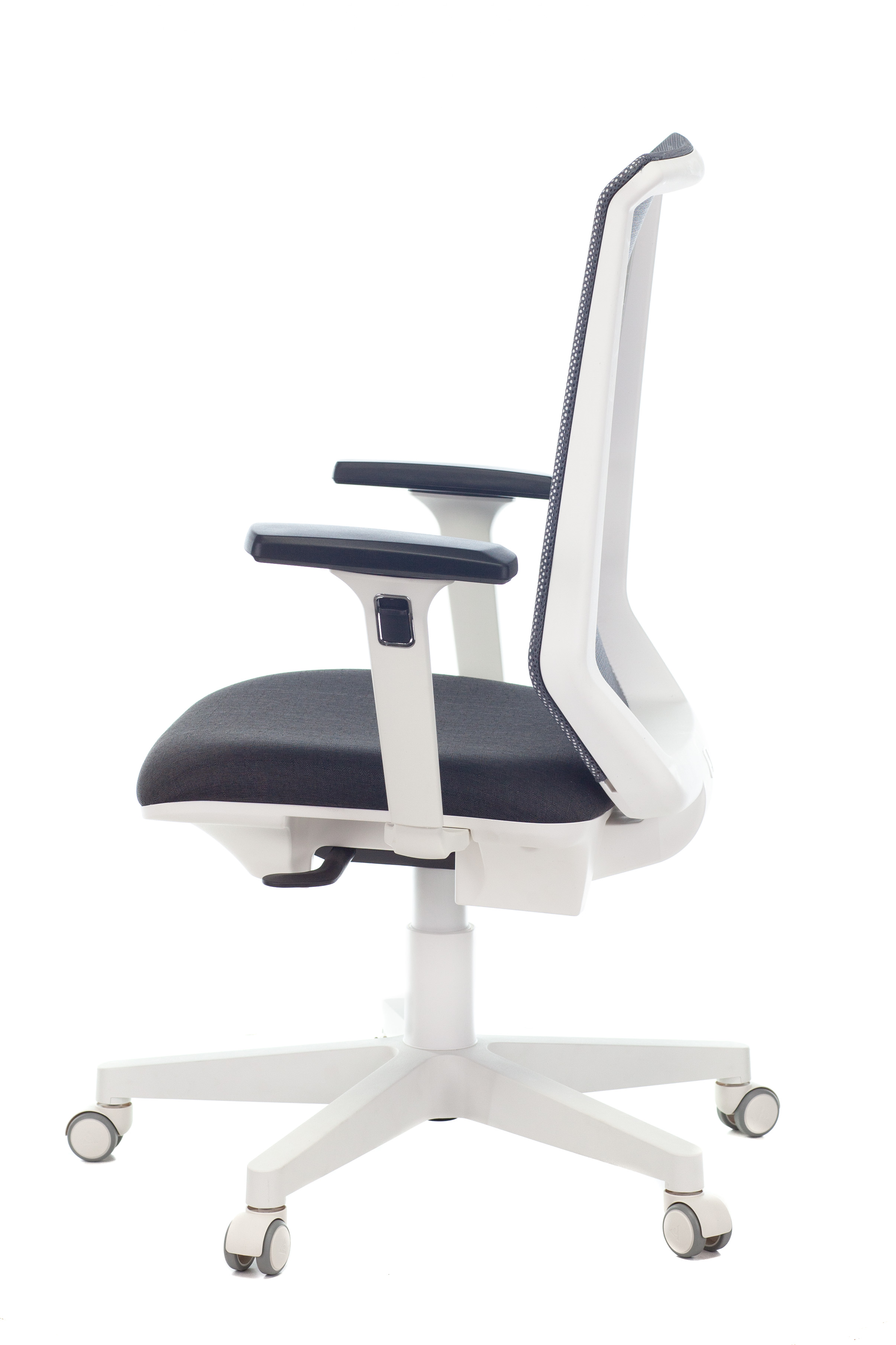 Подлокотники 3D обеспечивают возможность регулировки по высоте, ширине и углу наклона, что дополнительно улучшает эргономику. Высота кресла регулируется с помощью газлифта, что делает его подходящим для пользователей разного роста. Белая пластиковая крестовина придает креслу стильный вид и хорошую устойчивость, а колеса, предназначенные для паркета и ламината, обеспечивают легкость перемещения.