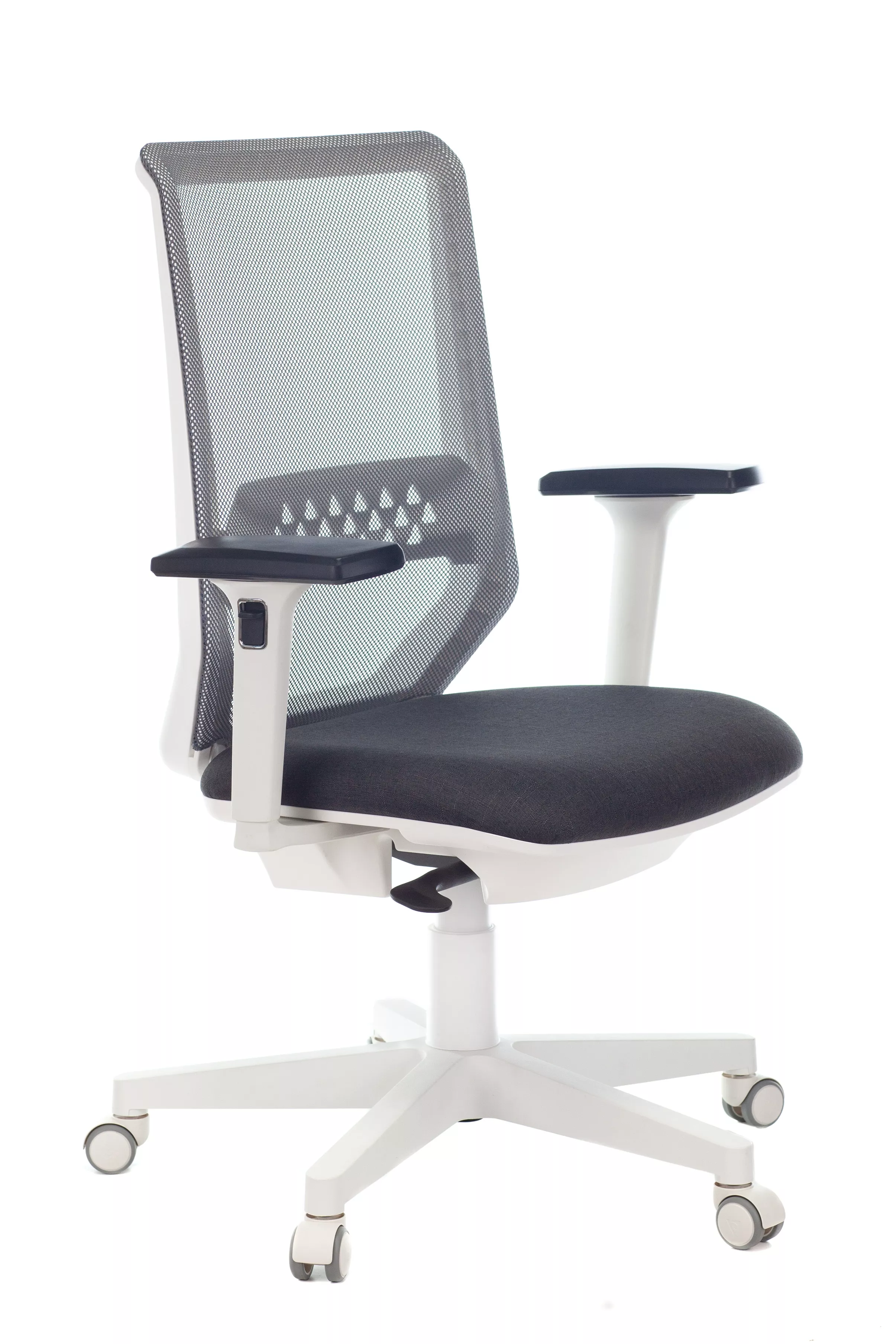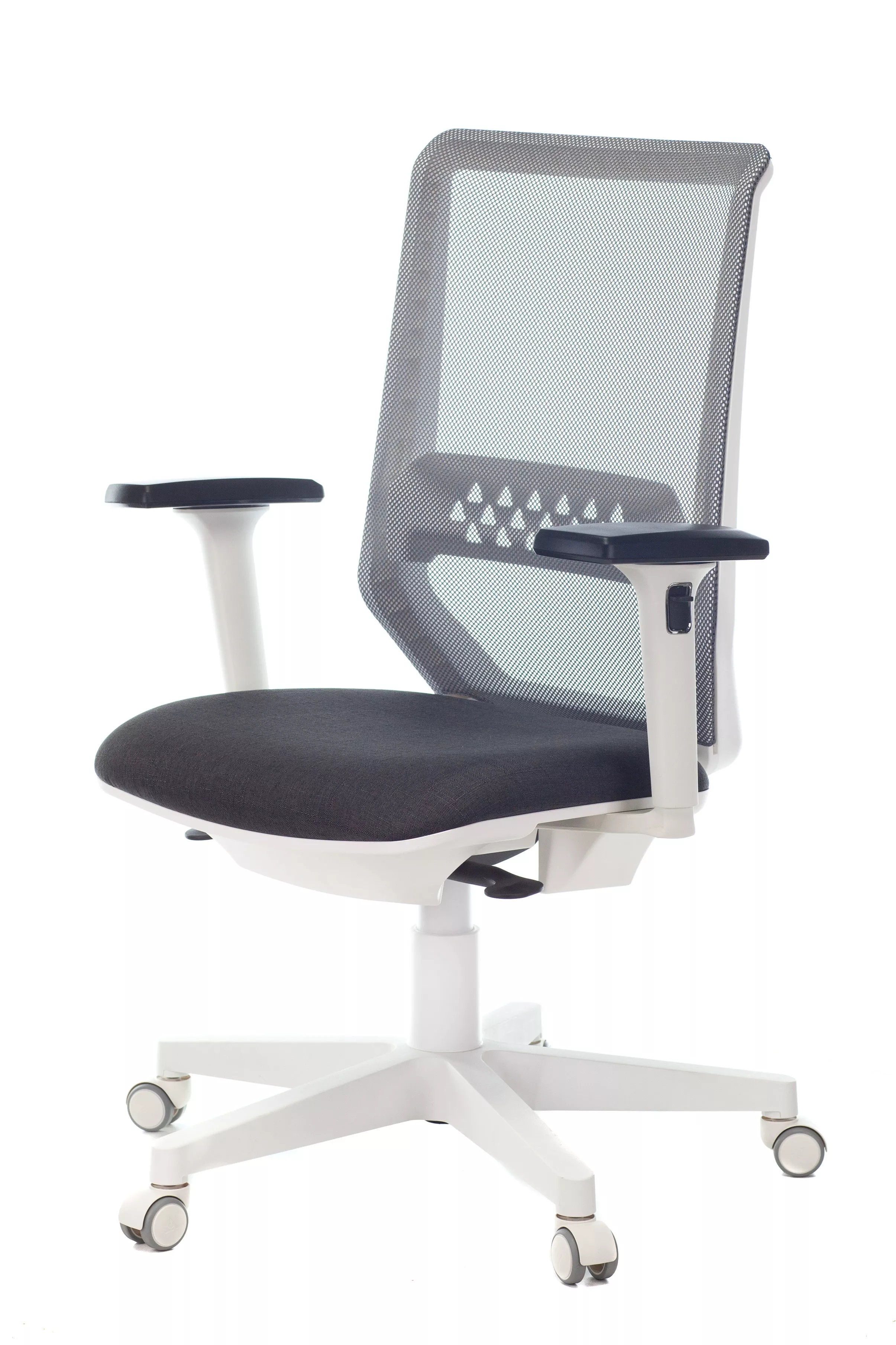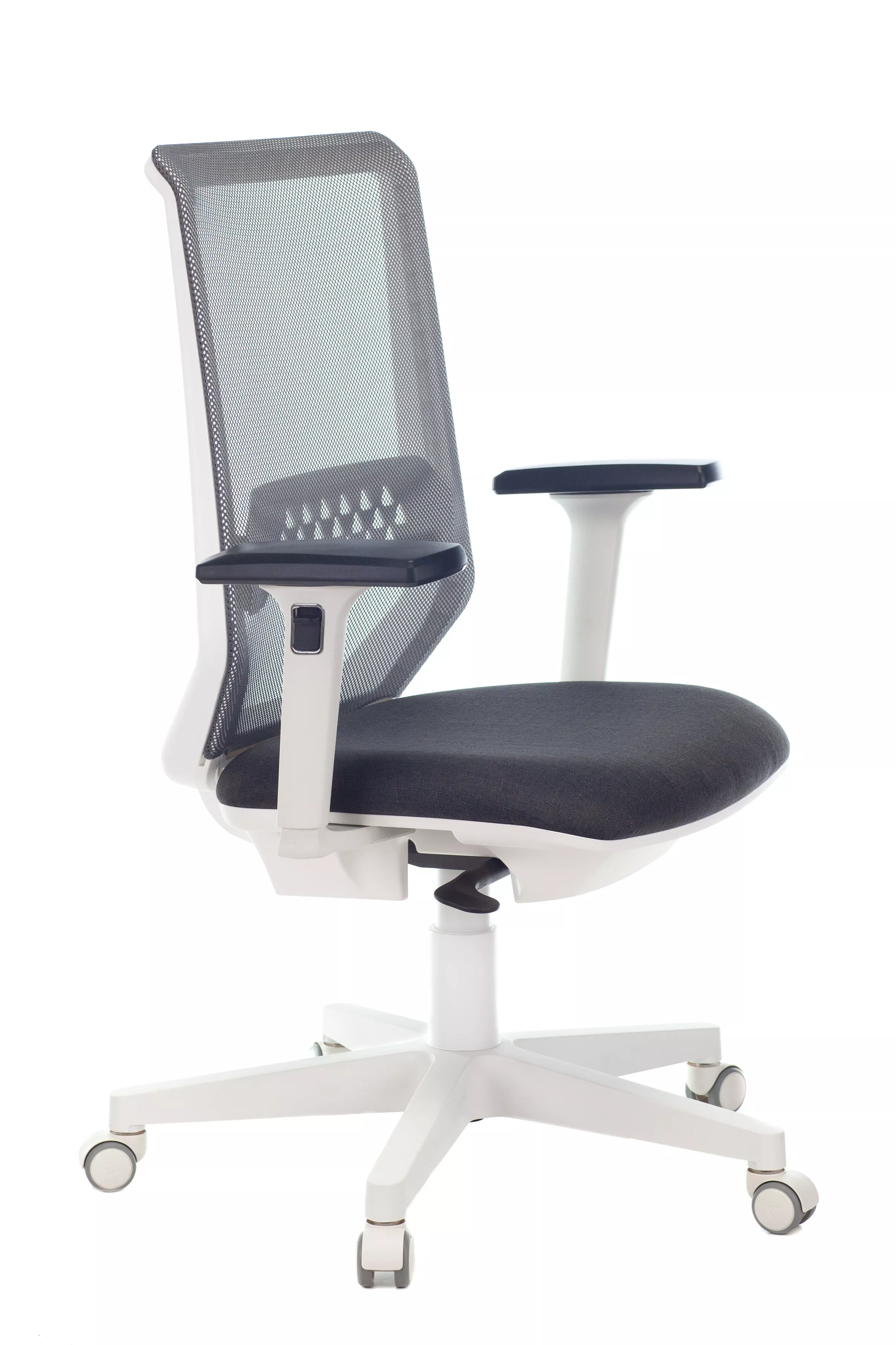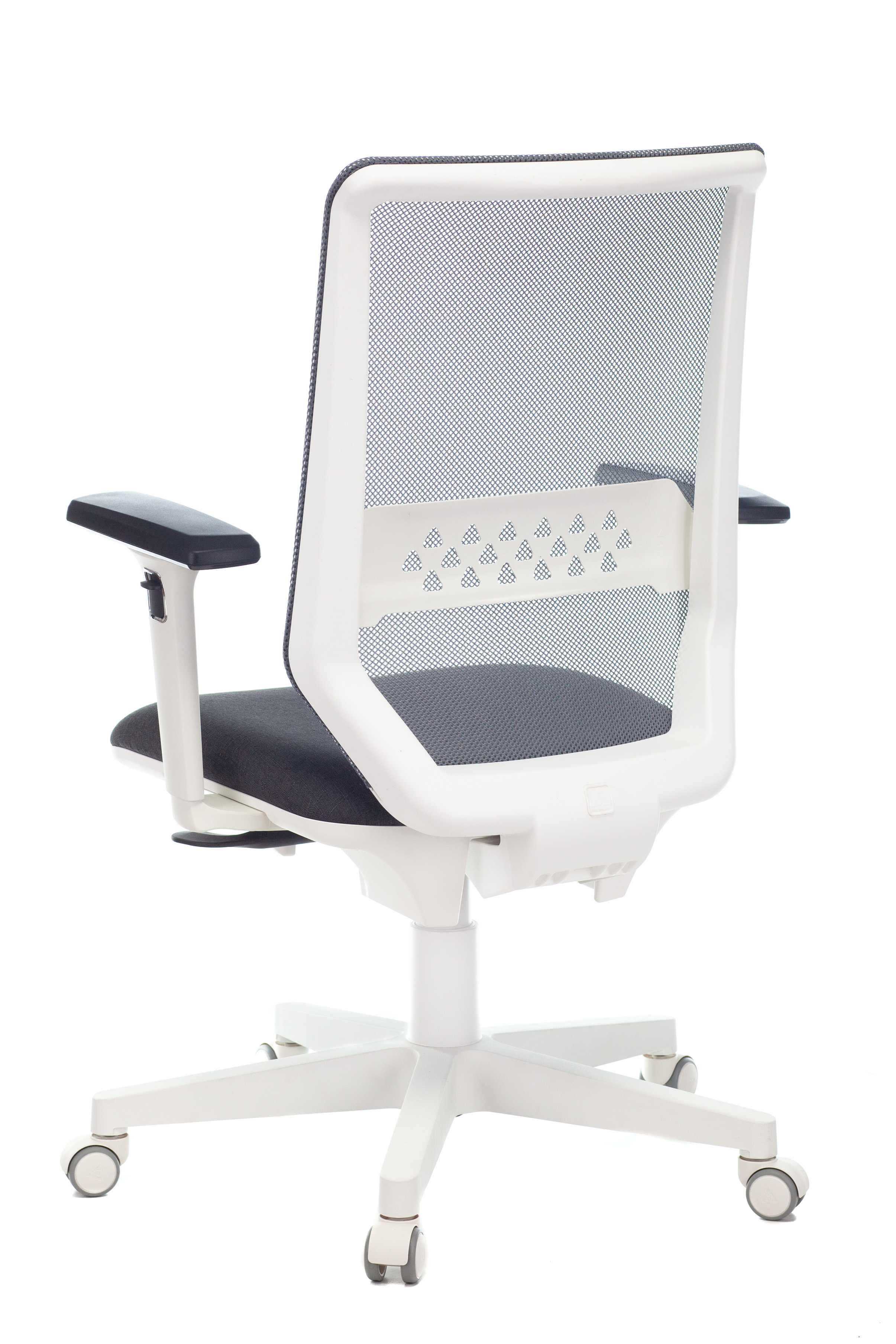 Подлокотники 3D обеспечивают возможность регулировки по высоте, ширине и углу наклона, что дополнительно улучшает эргономику. Высота кресла регулируется с помощью газлифта, что делает его подходящим для пользователей разного роста. Белая пластиковая крестовина придает креслу стильный вид и хорошую устойчивость, а колеса, предназначенные для паркета и ламината, обеспечивают легкость перемещения.
