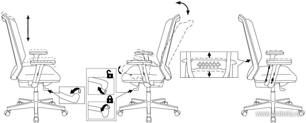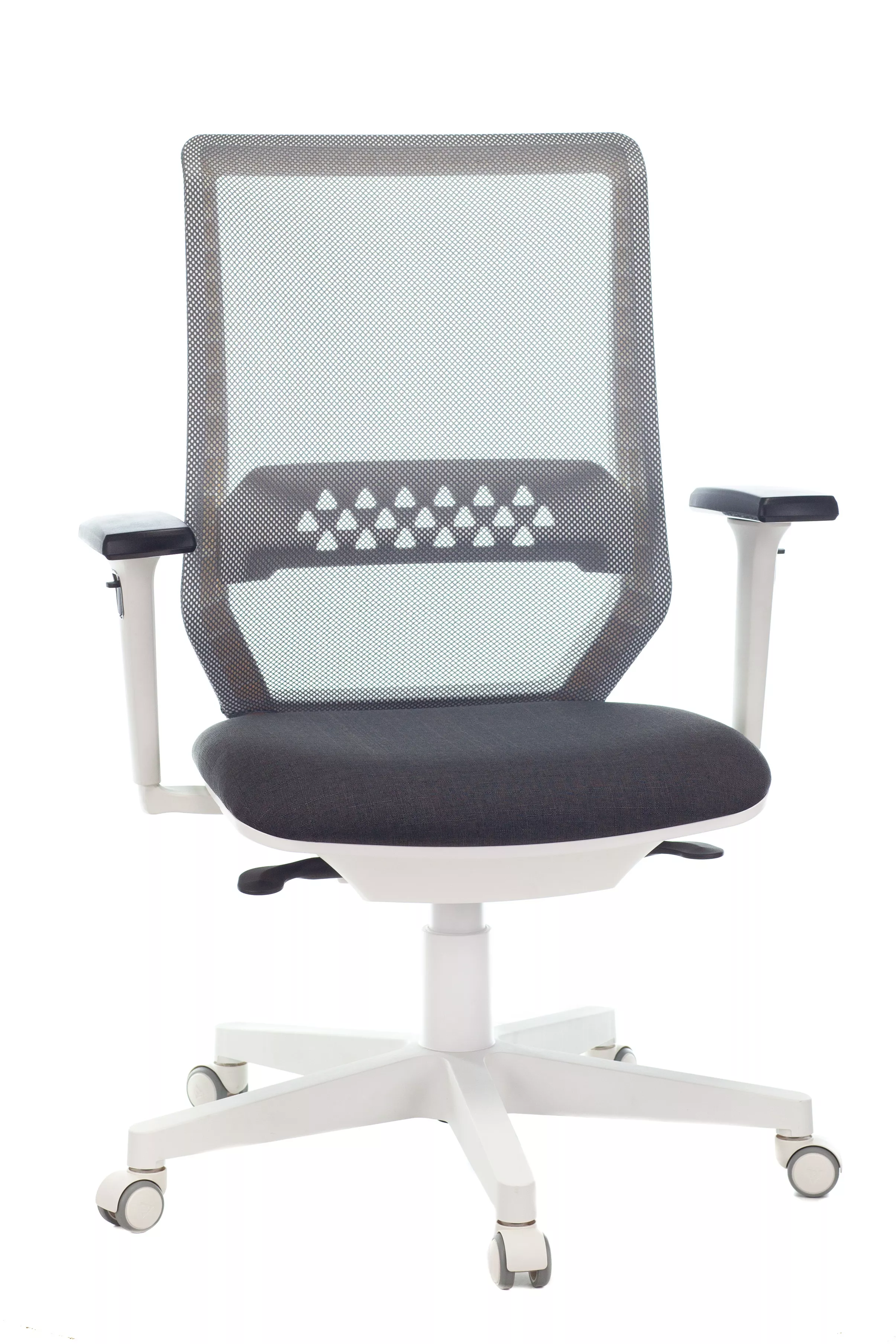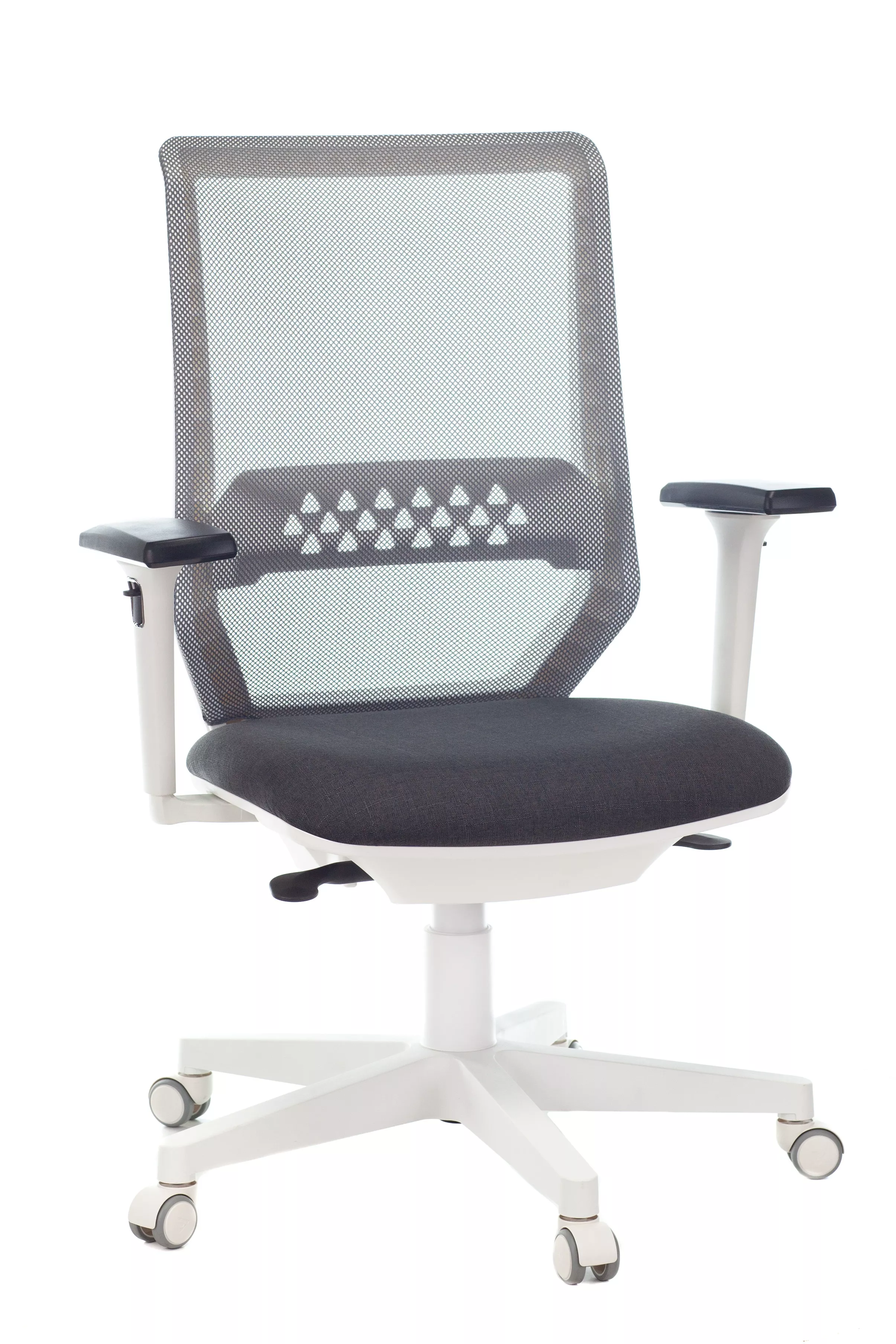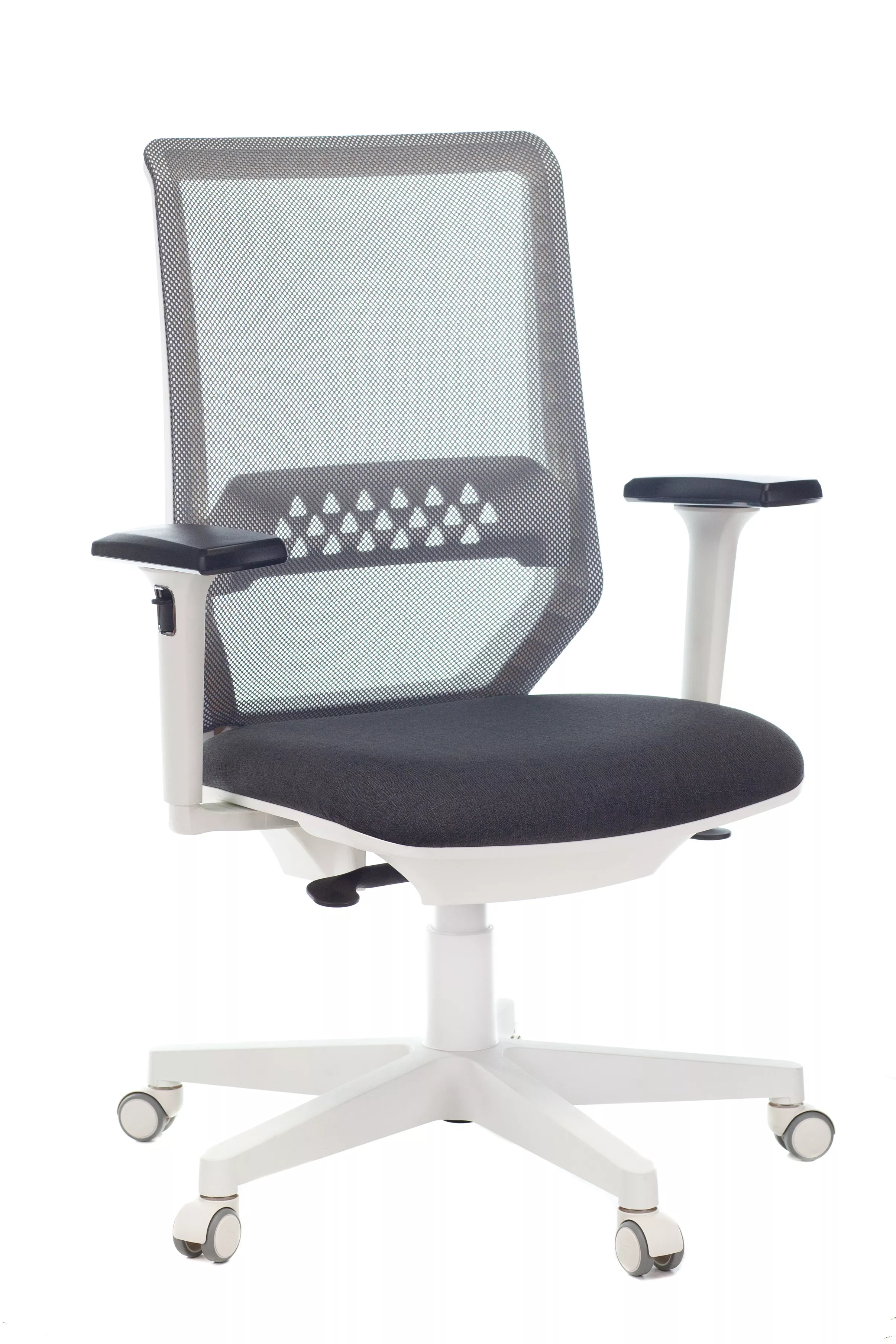 Подлокотники 3D обеспечивают возможность регулировки по высоте, ширине и углу наклона, что дополнительно улучшает эргономику. Высота кресла регулируется с помощью газлифта, что делает его подходящим для пользователей разного роста. Белая пластиковая крестовина придает креслу стильный вид и хорошую устойчивость, а колеса, предназначенные для паркета и ламината, обеспечивают легкость перемещения.
