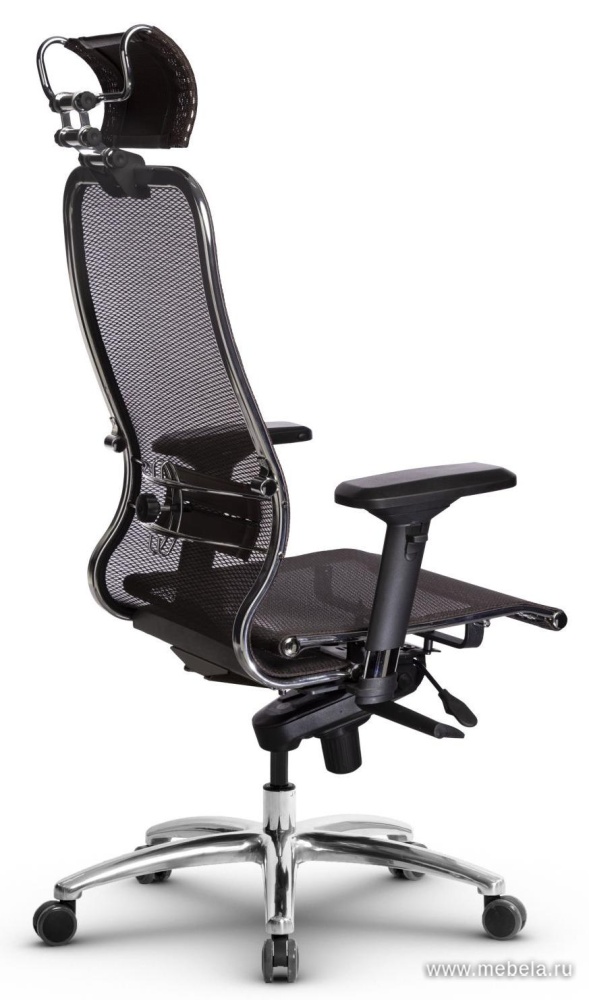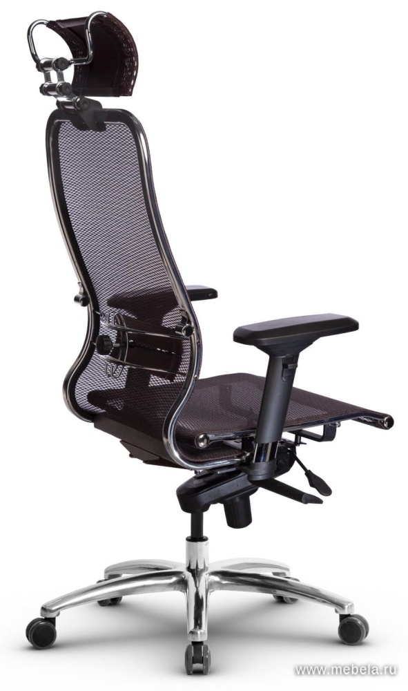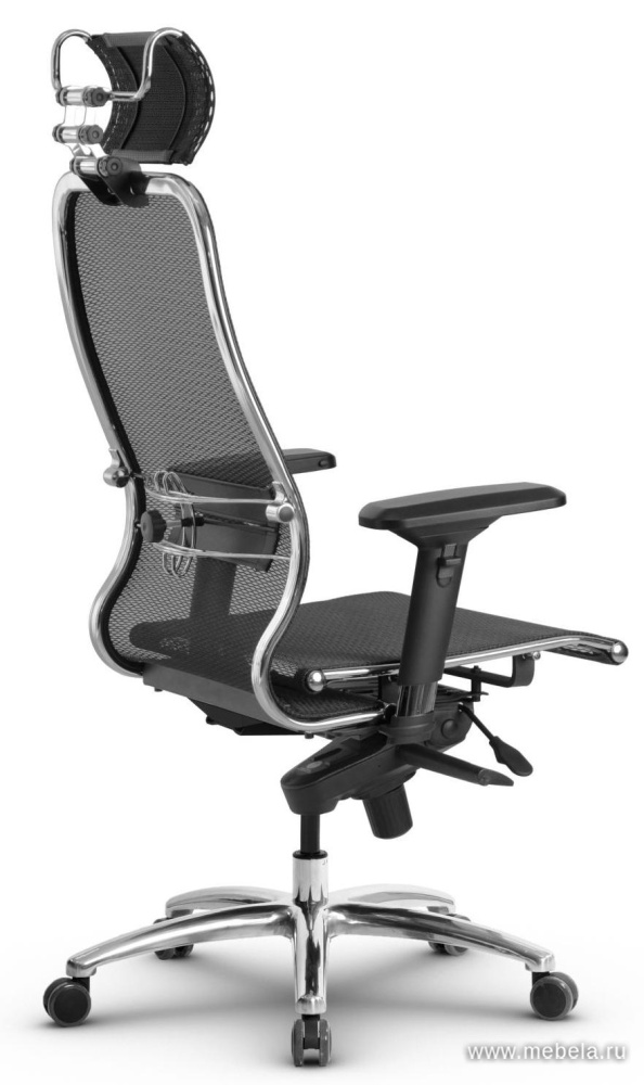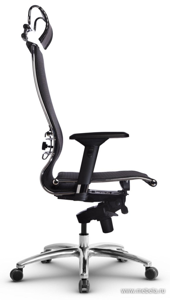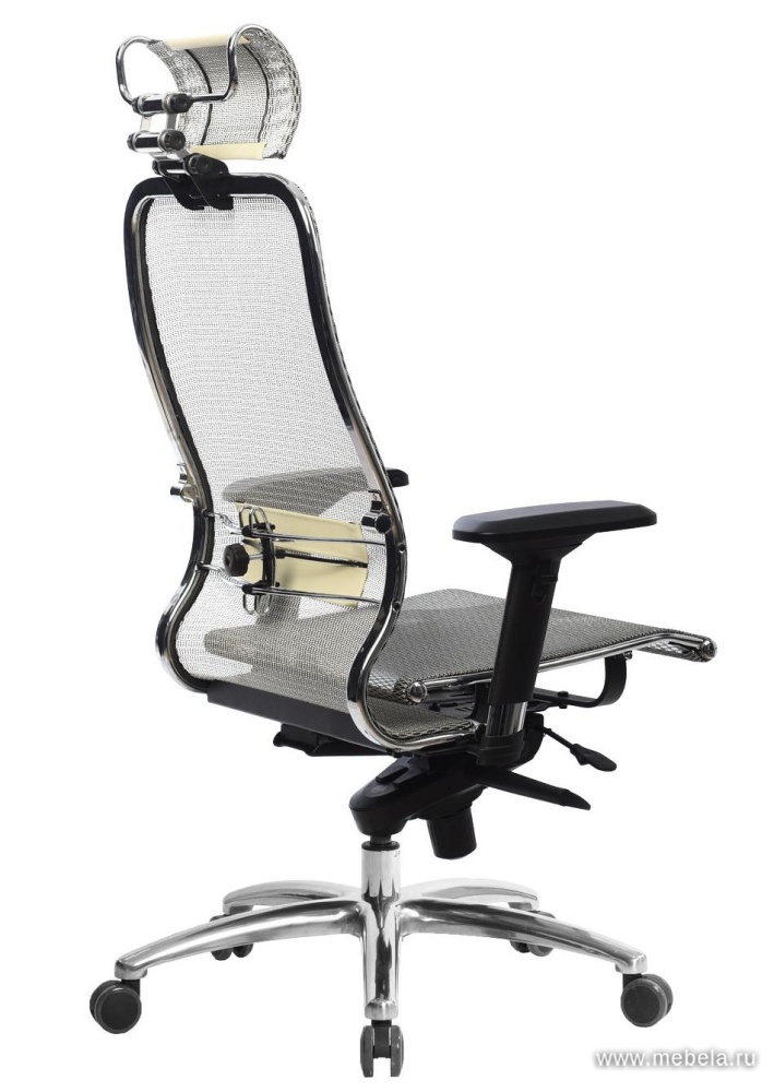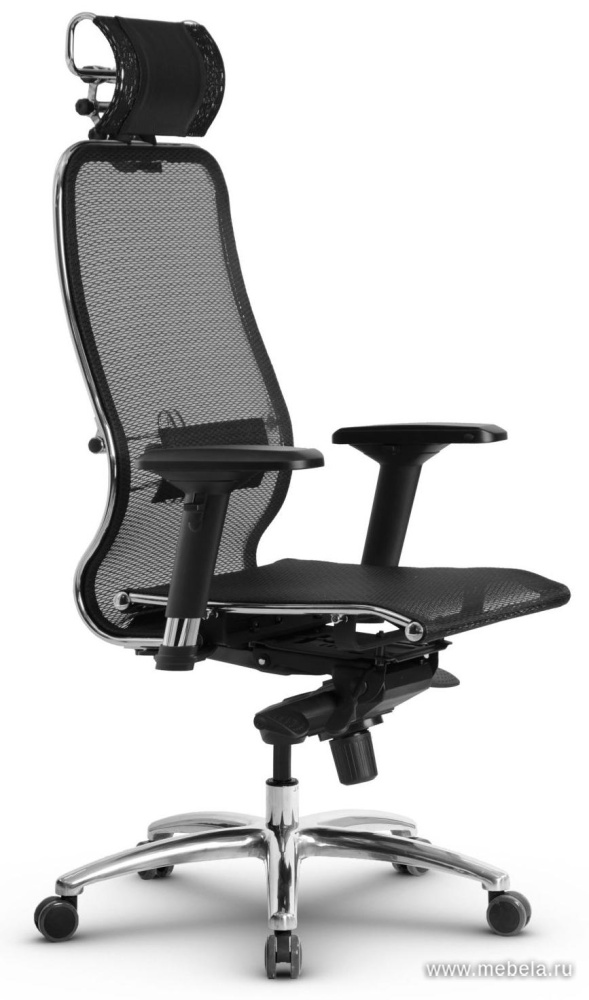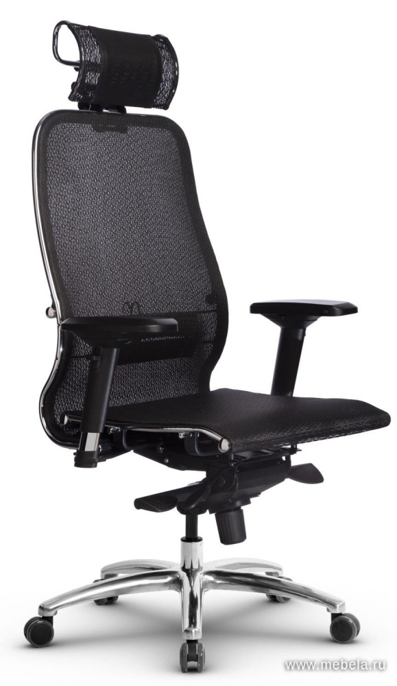 Это оригинальное кресло для офиса сочетает в себе два противоположных качества: изящество и массивность. Тонкая изогнутая спинка гармонично сбалансирована массивной крестовиной, объемным подголовников и укороченными подлокотниками.