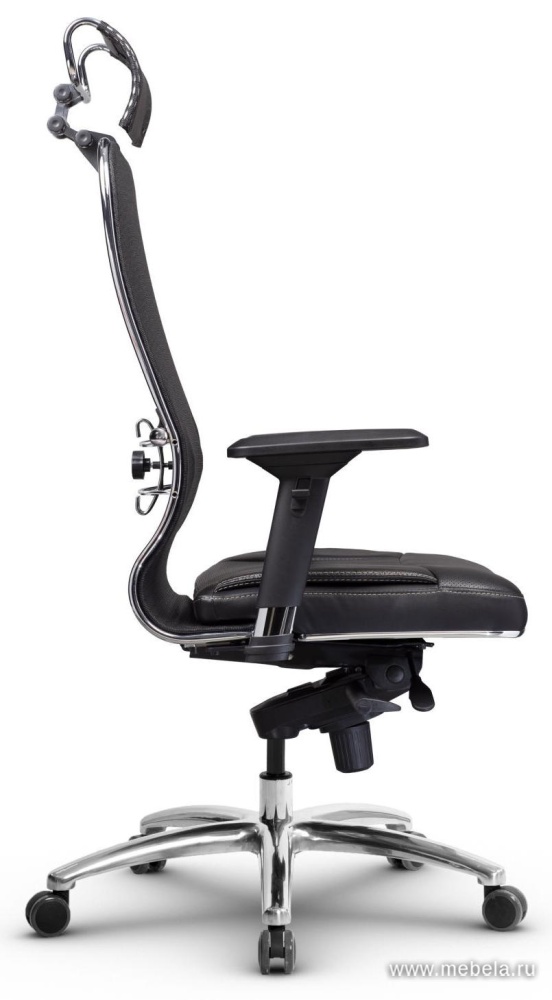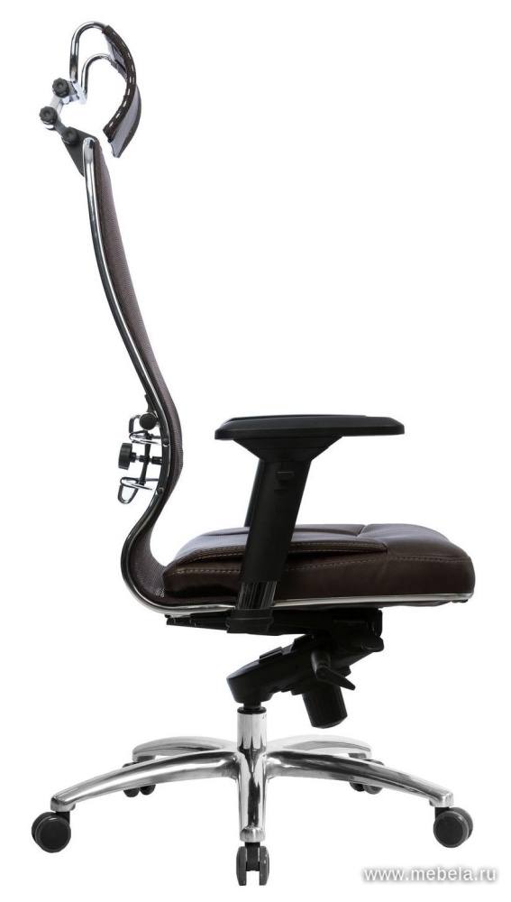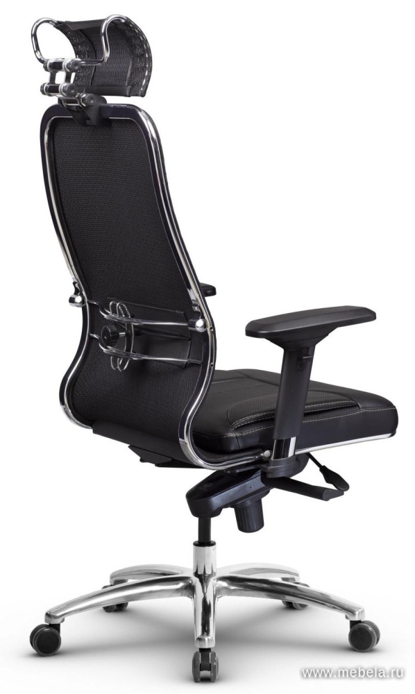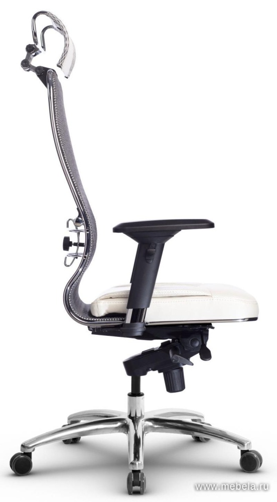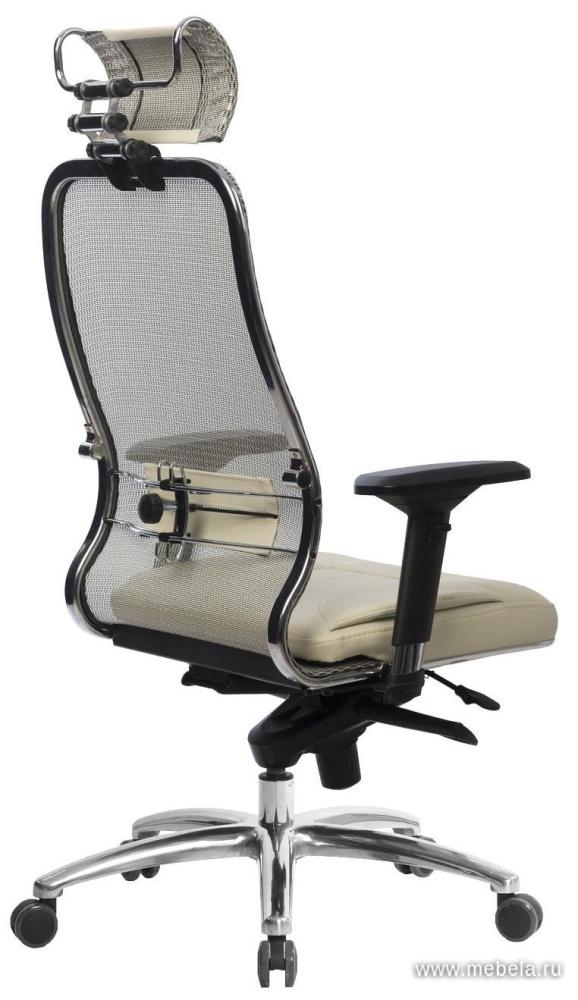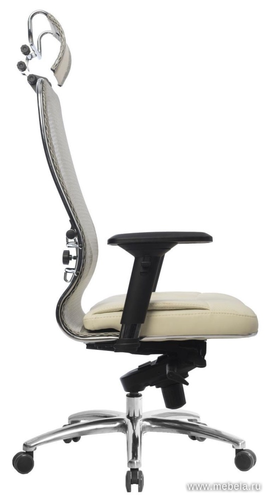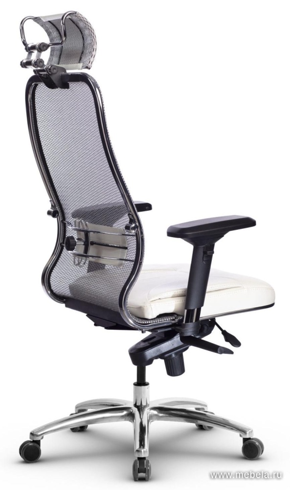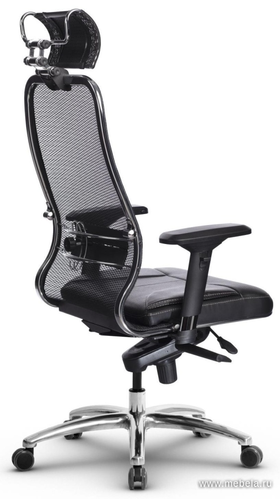 Кресло, сочетающее два типа обивки: натуральную перфорированную кожу и сетчатую ткань. Кожа подбирается в тон сетке. Особую оригинальность модели придает подголовник, прикрепленный на хромированное изогнутое основание. Подойдет руководителю.