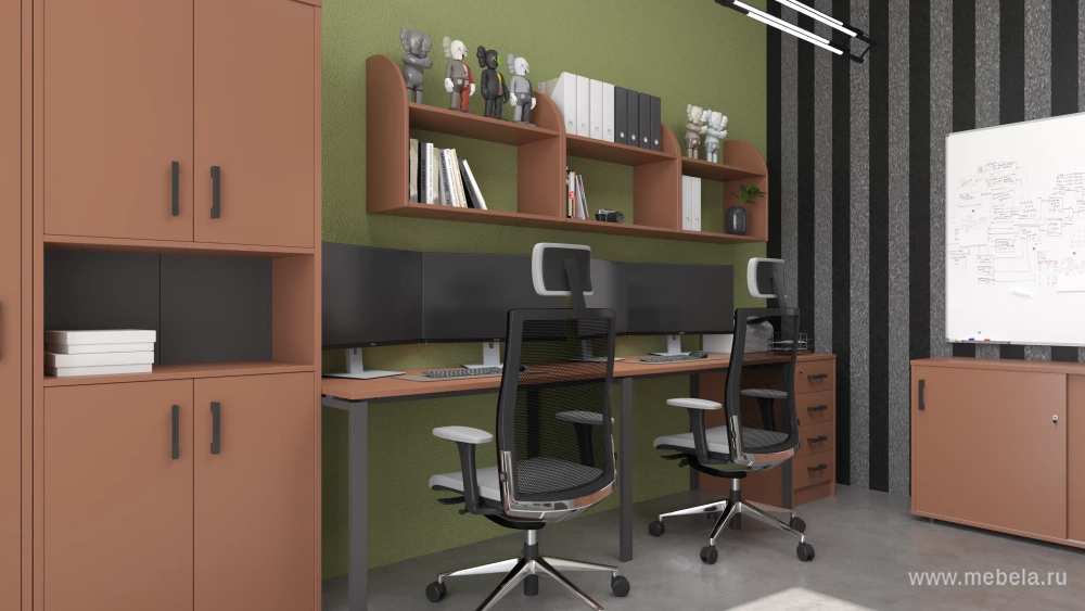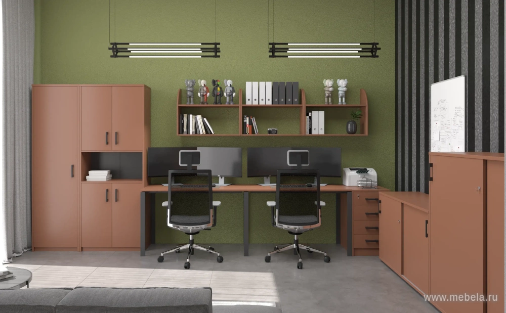 Мебель Арго (Argo) в цвете терракота освежит любой офис и сделает рутинный рабочий процесс гораздо интереснее. Комбинированные цветовые решения (цветные вставки на ящиках столов и т.д.) и эргономичный дизайн создадут не только уникальную атмосферу, но и повысят эффективность работы.