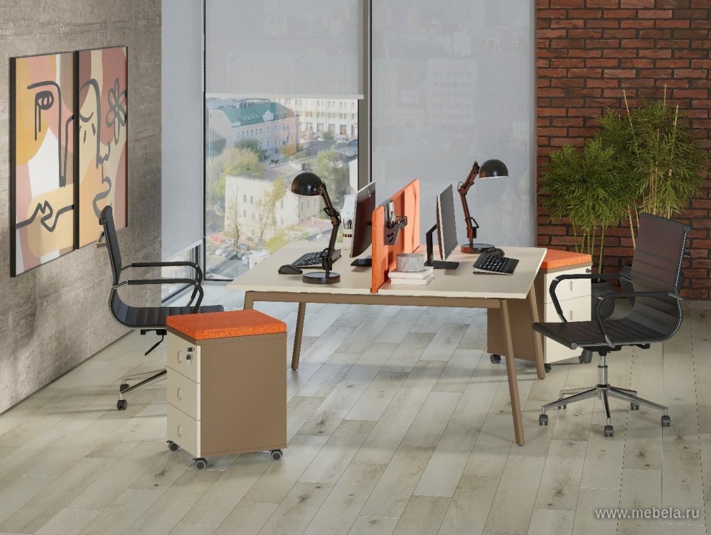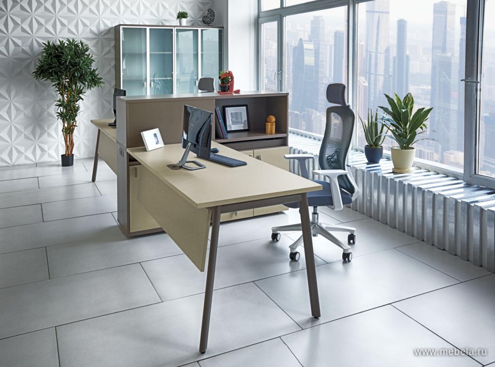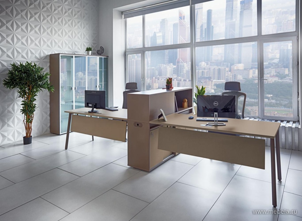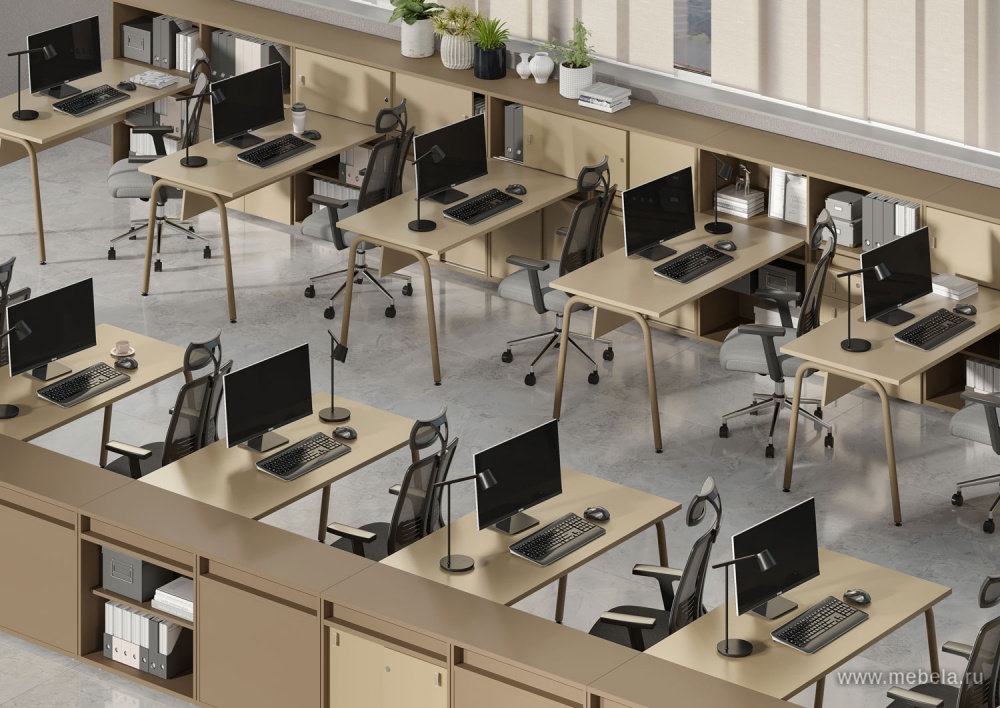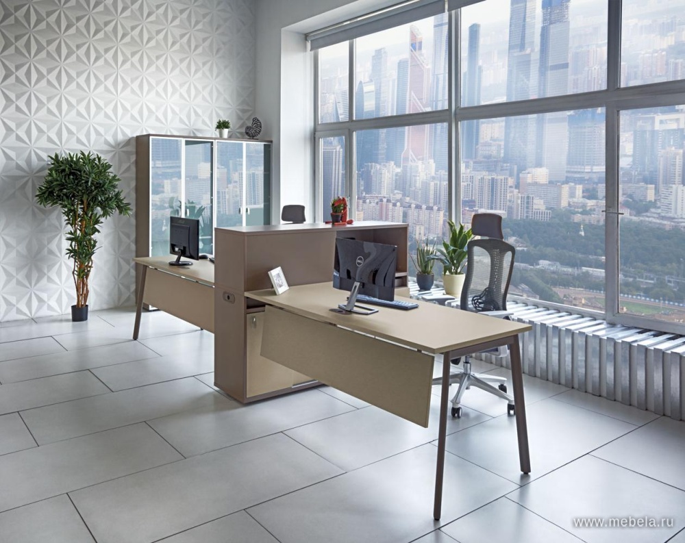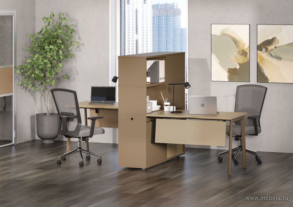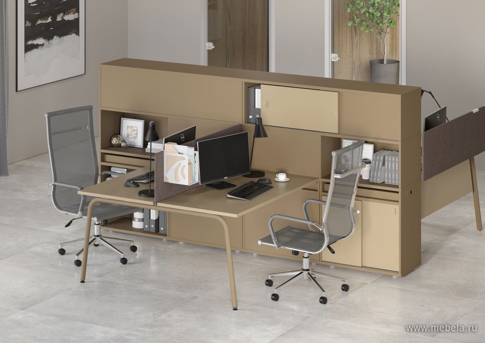 Мебель для персонала Estetica в оттенке “сатин” и "капучино" - это не только стильный выбор для офиса, но и практичный выбор для ваших сотрудников. Она имеет приятную на ощупь поверхность, которая позволяет легко удалять загрязнения и сохраняет свой первоначальный вид на протяжении долгого времени.