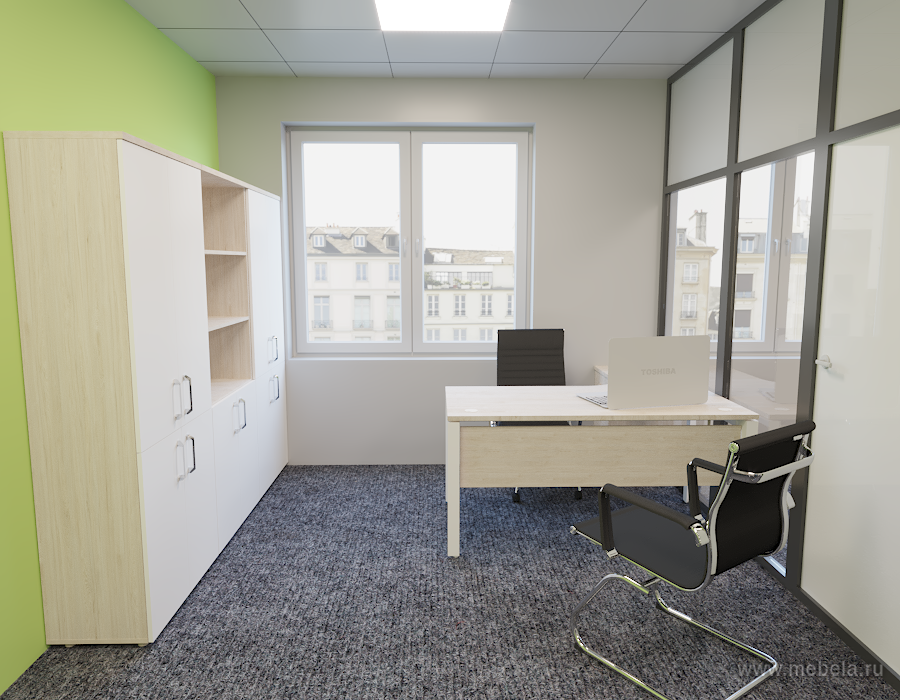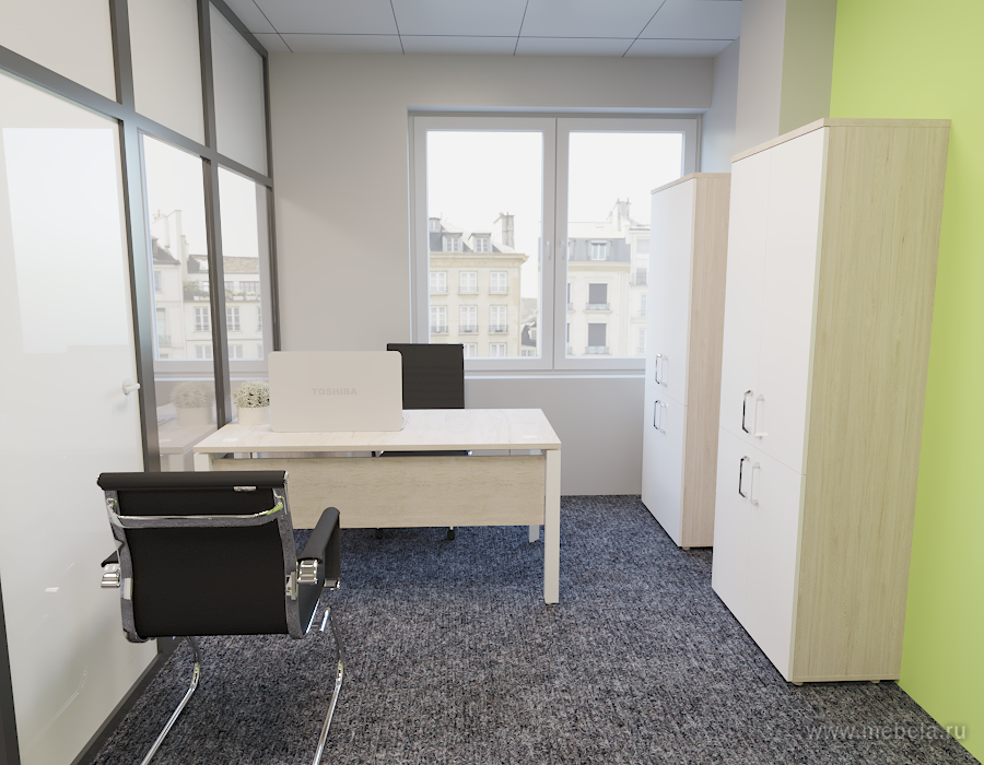 Офисный шкаф средний широкий (2 низких фасада ЛДСП)