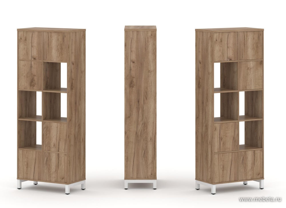 Офисный шкаф высокий узкий левый / правый (1 низкий фасад ЛДСП + 1 средний фасад ЛДСП)