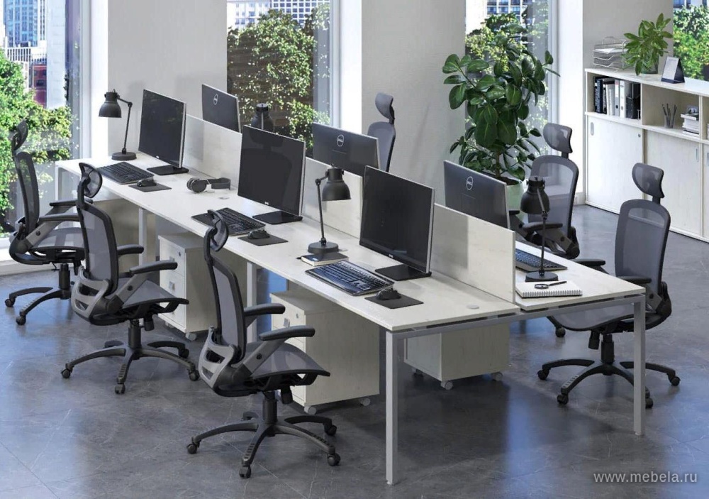 Офисная мебель для персонала Style Dub Navarre Российская мебель для рабочих мест, изготовленная из ЛДСП «Kronospan»: 22 мм для столешниц, каркасов тумб, приставок и стеллажей, и 18 мм для фасадов шкафов и тумб. Конструкция прочная, аккуратная, исполнение в цвете Вяз Благородный.