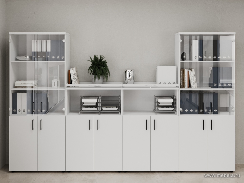Офисный шкаф высокий широкий (2 низких + 2 средних фасада, задняя стенка ЛДСП