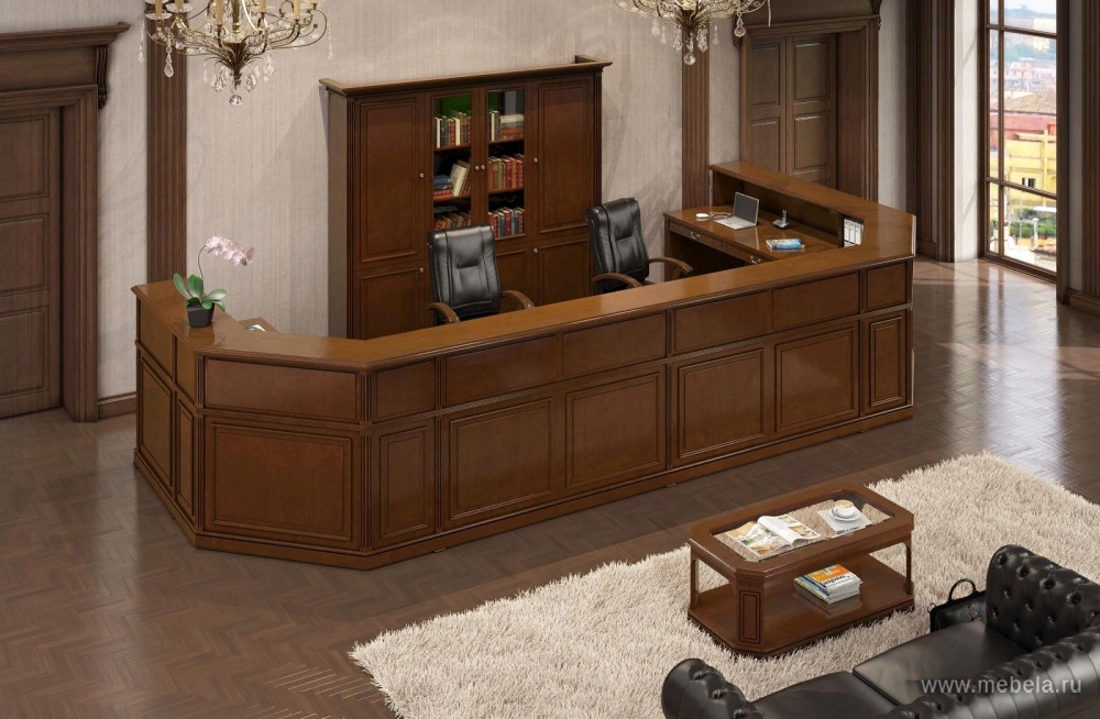 Всегда актуальный роскошный классический интерьер мебели для кабинетов Inter NEW отлично подойдет руководителям высшего звена для адекватного отражения собственного статуса и успеха. Сочетание дорогих пород дерева, натуральной кожи и солидных форм подчеркнет статус крупной и уверенно стоящей на ногах компании.