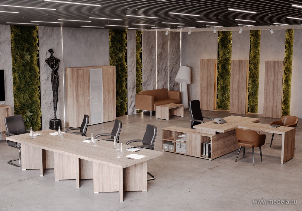 Лаконичный кабинет в современном стиле. Отличный вариант для молодого руководителя подразделения, владельца компании или начальника отдела информационных технологий, маркетинга, рекламы. Кабинет доступен в трех цветах: орех, вяз, светлый дуб.
