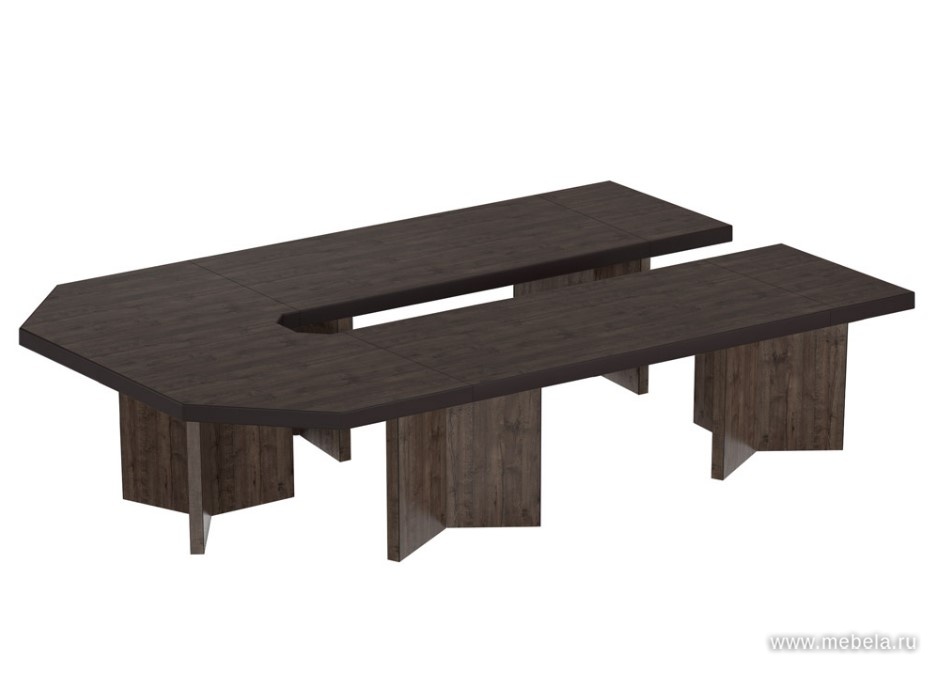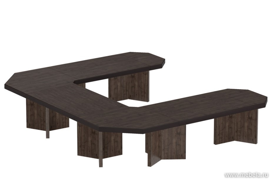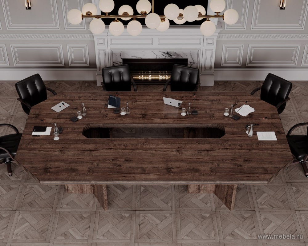 Столы для переговоров Bern создавались специально для старшего управленческого звена или совместных встреч с респектабельными гостями. На такой элитный образ работают эффектные классические элементы декора в виде изысканных краев столешницы и обработки фасадов панелей, выполненных в палисандровом цвете.