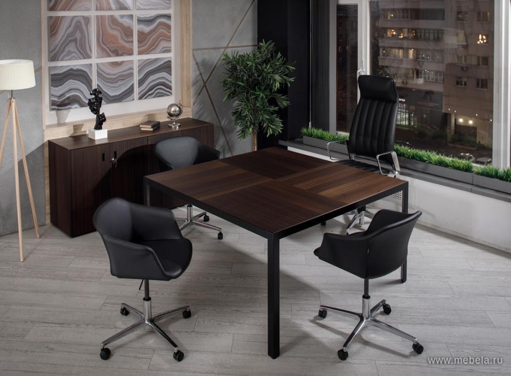В основе концепции стола Enzo – минималистичная металлическая рама, в которую встроена столешница из шпонированного МДФ. Конструкция и опоры с треугольным сечением из металлического профиля обеспечивают максимальную устойчивость и прочность.
