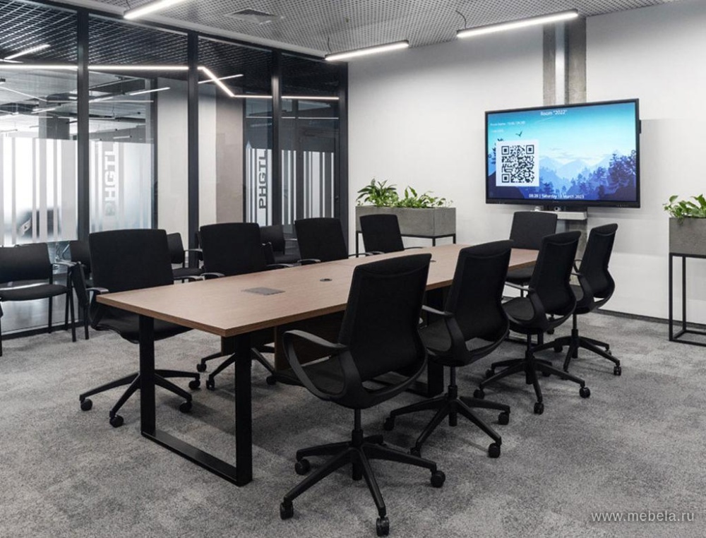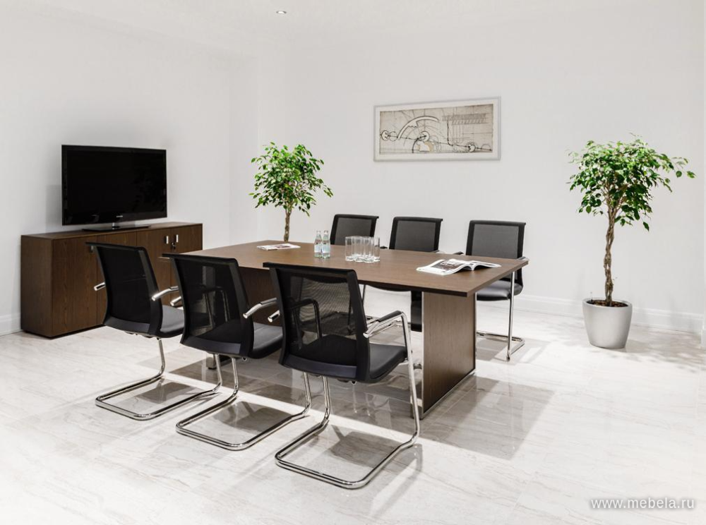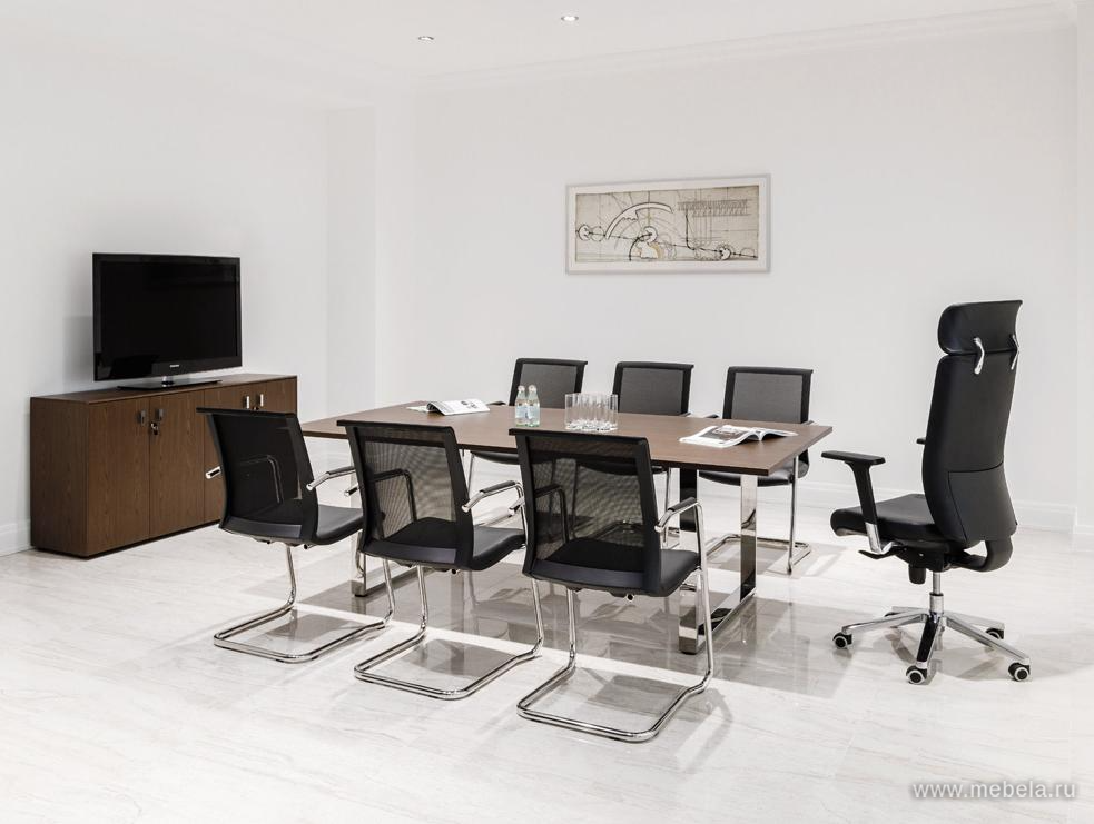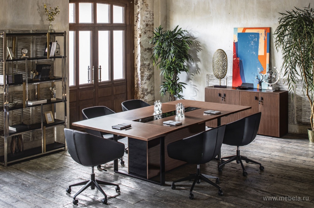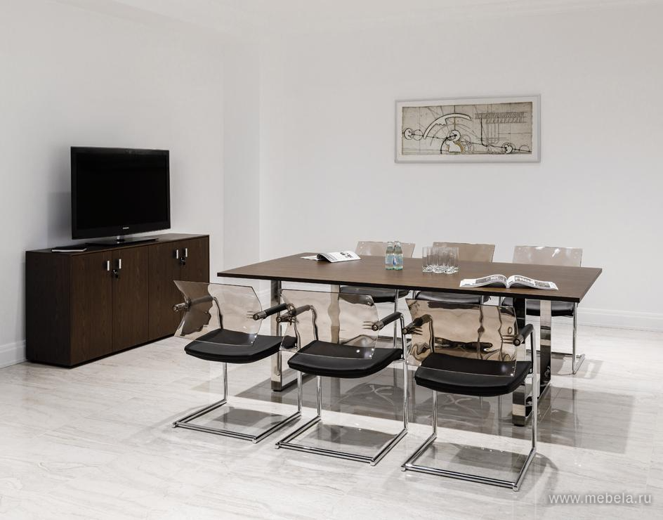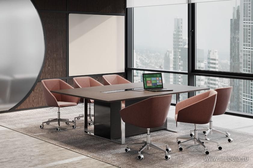 Классический прямоугольный стол для переговоров Exe российско-итальянского производства - выразительный, габаритный, с выраженным деловым дизайном. Традиционный вариант переговорной мебели. Достаточно консервативен для неформального общения, но способен помочь в согласовании многих рабочих проблем.