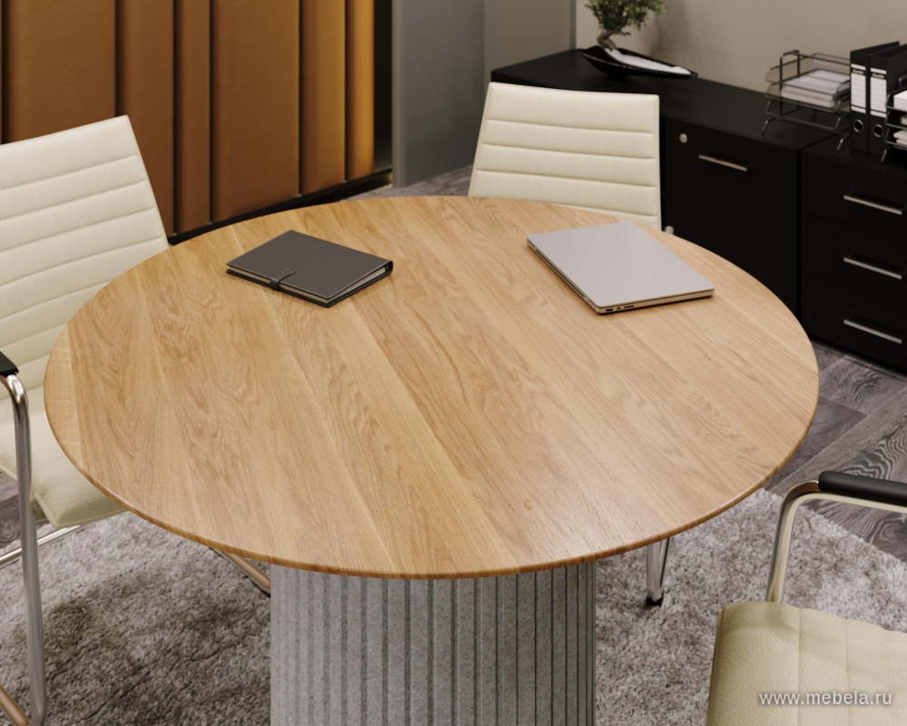 Создайте идеальное пространство для общения с круглым столом переговорным OAK. Его массивная цельноламельная столешница из дуба в светлом или темном оттенке добавит уют и стиль, а металлическое основание в различных цветах гармонично впишется в любой интерьер.