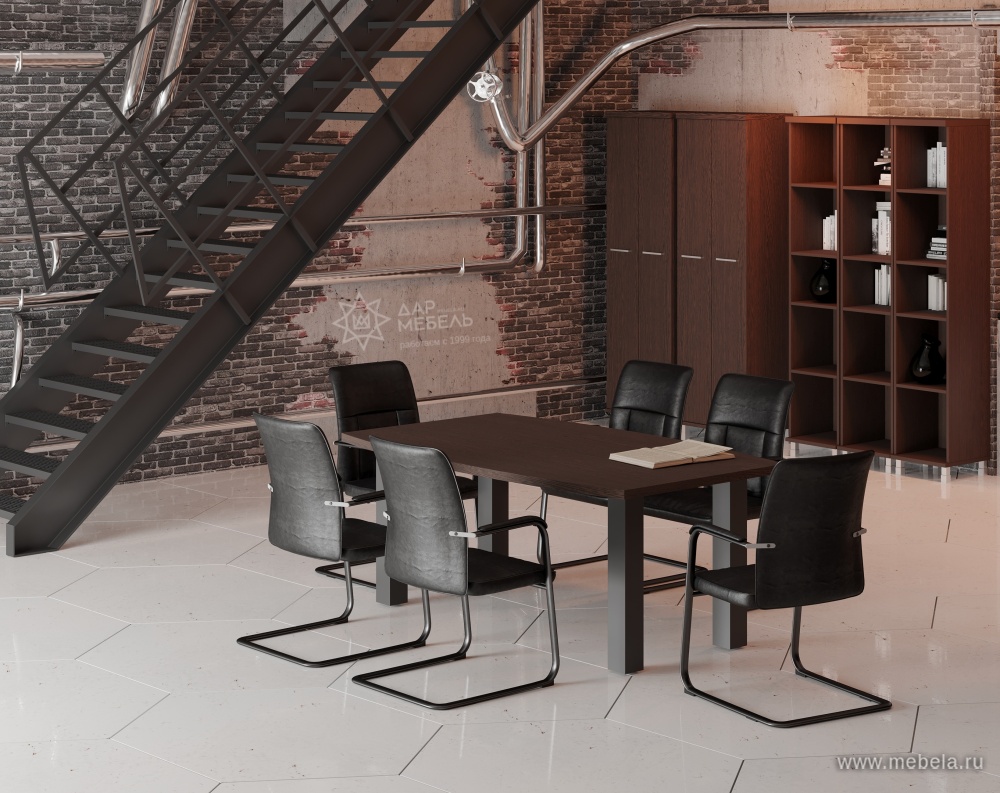 Столы для переговоров First Wenge (Фёст) одинаково хорошо подойдут для создания классического или современного открытого интерьера. Для этого в комплекте гарнитура есть мебель на глухих ДСП панелях-опорах или на металлизированных прямоугольных ножках. Прямоугольные или закругленные формы придадут офису желаемый стиль.