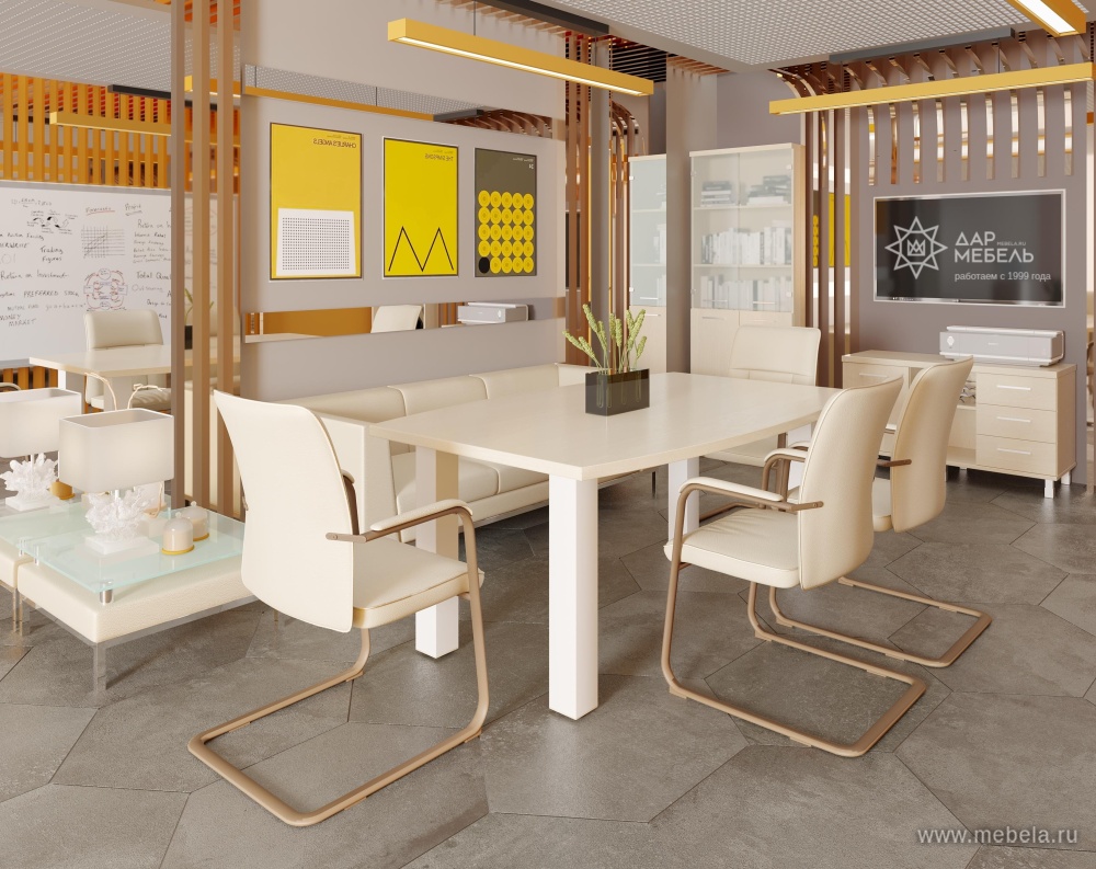 Высокое качество материалов европейского уровня, помноженное на стильный современный дизайн, создало столы для переговоров “Ялта”. Яркий открытый стиль из экологически чистых ламинированных панелей, покрытых меламиновой пропиткой для максимально длительного срока службы – этот мебельный гарнитур безупречен во всем.