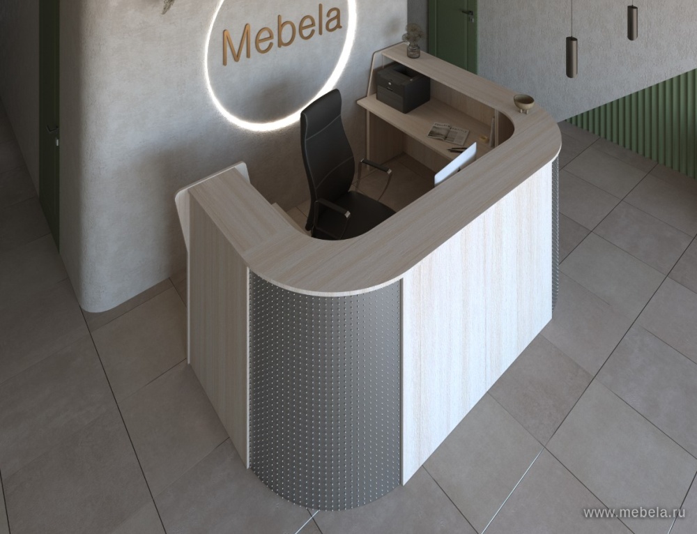 Стойка администратора Эдем в цвете дуб молочный позволит создать замечательную приемную зону в любом месте. В модели воплощены самые передовые дизайнерские идеи современных мебельных производителей. Необычная форма стойки с гнутой фасадной частью из металлизированного пластика придаст приемной особый шарм.